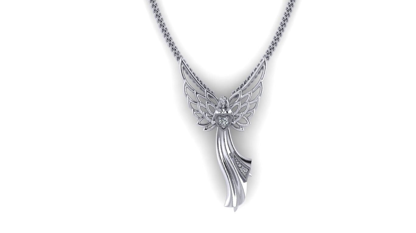 Angelisa Angel Pendant *Moissanite With 10k/14k/18k White, Yellow Rose Green Gold, Gold Plated & Silver* Heart Love Women Christ Charm Gift