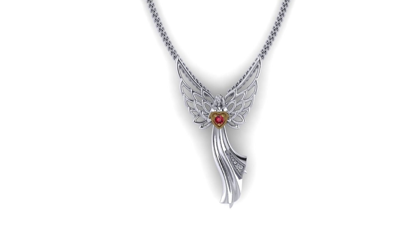 Sold OutAs this is a 2 tone pendant, please let us know the color breakdown you prefer. Let us know what color gold (yellow, white, rose, green or plating combination) you would like for the angel and the heart.