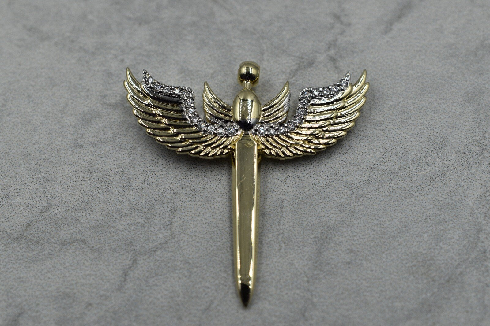 Archangel Michael's Sword Pendant *Moissanite With 10k/14k/18k White, Yellow, Rose, Green Gold, Gold Plated & Silver* Wing Charm Necklace