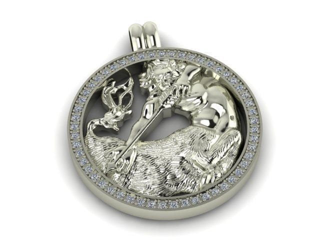 Curious Sagittarius Pendant *Moissanite With 10k/14k/18k White, Yellow, Rose, Green Gold, Gold Plated & Silver* Zodiac Astrology Charm Gift
