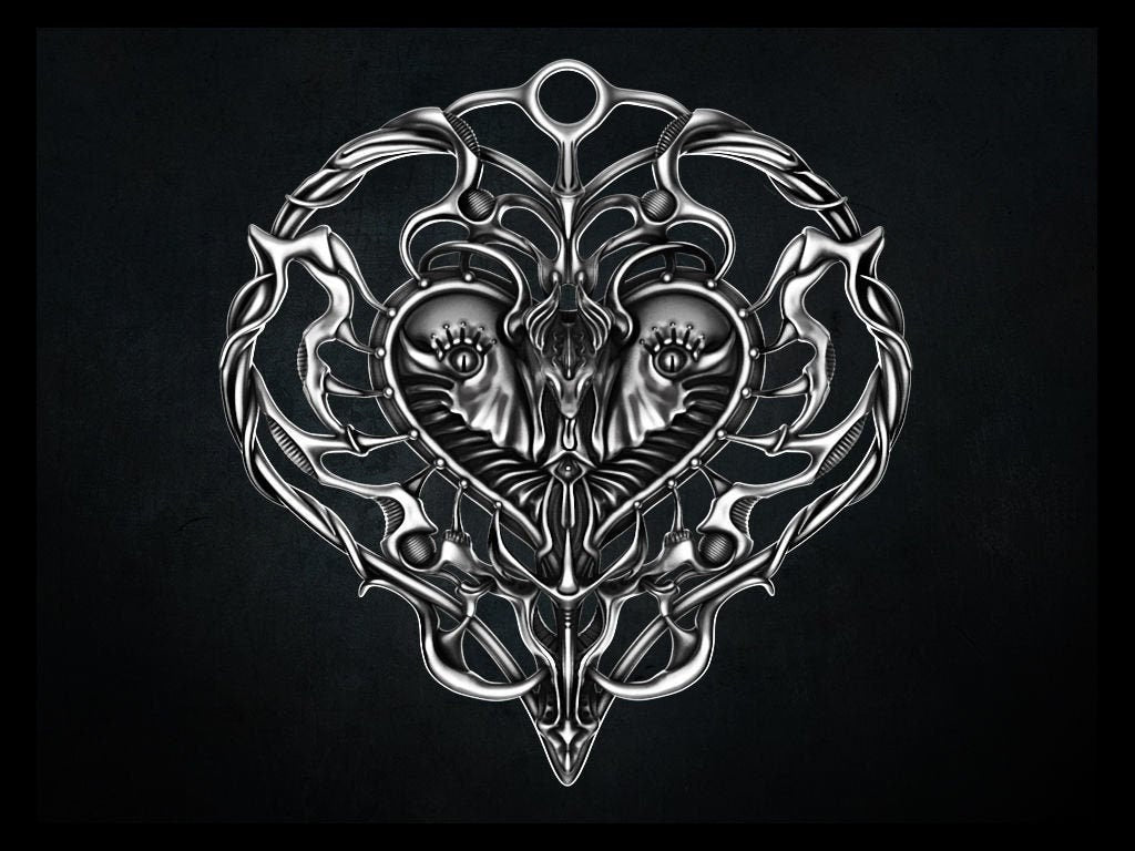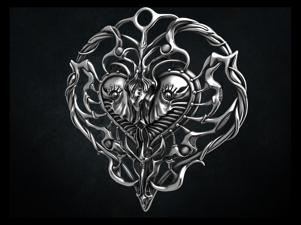Custom Order for Christopher - Lovelace Heart Pendant - Sterling Silver - Set with 4 Black Moissanite Stones