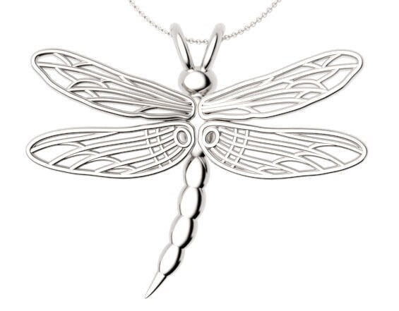 Demoiselle Dragonfly Pendant *10k/14k/18k White, Yellow, Rose, Green Gold, Gold Plated & Silver* Bug Wing Animal Women Girl Charm Necklace