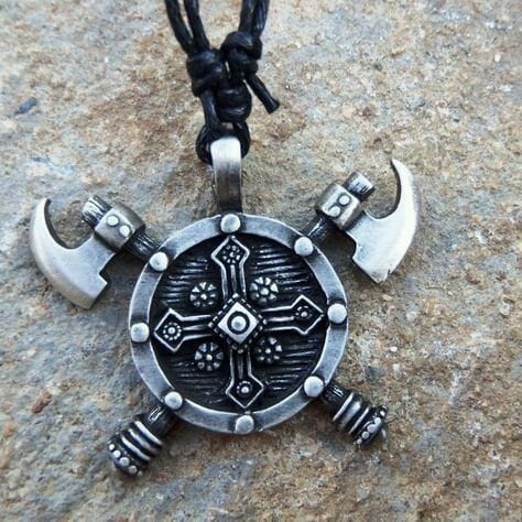 Lionheart Warrior Pendant *10k/14k/18k White, Yellow, Rose, Green Gold, Gold Plated & Silver* Shield Sword Axe Blade Weapon Charm Necklace