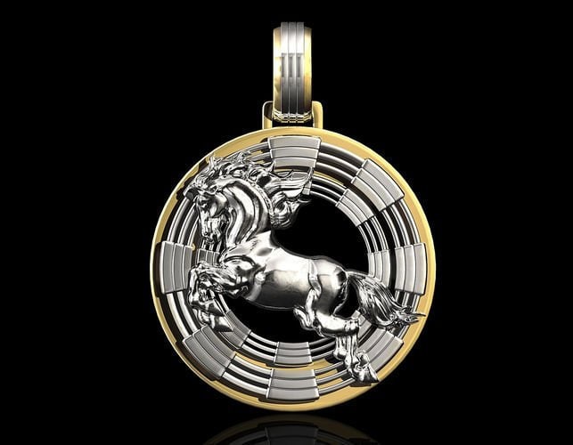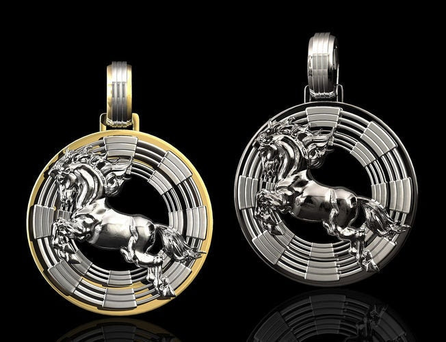 As this is a 2 tone pendant, please let us know the color breakdown you prefer. Let us know what color gold (yellow, white, rose, green or plating combination) you would like for outer ring and the horse.