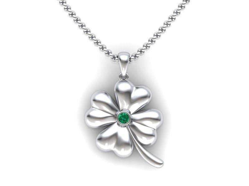 My Lucky Clover Pendant *Synthetic Emerald With 10k/14k/18k White, Yellow, Rose, Green Gold, Gold Plated & Silver* 4 Leaf Fortune Good Luck