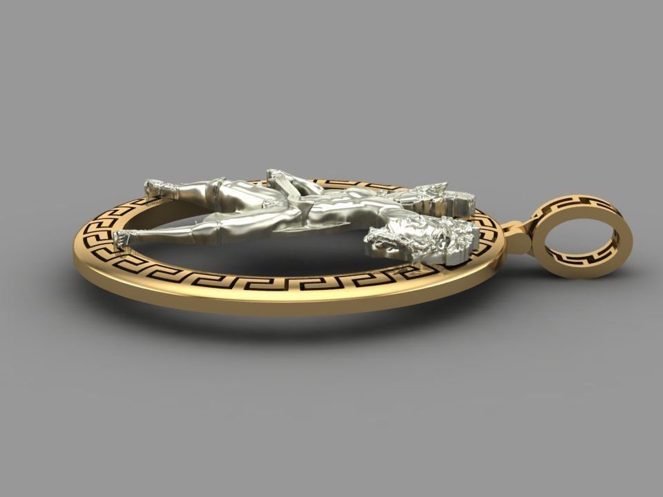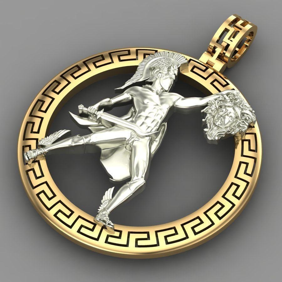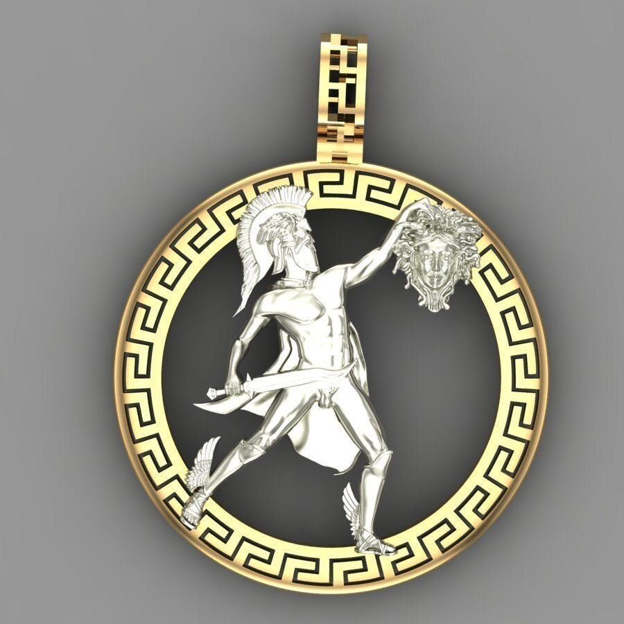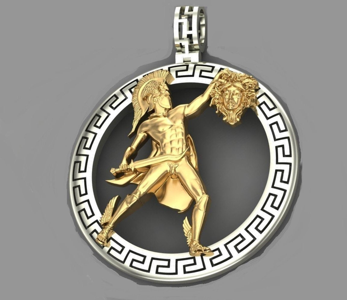 As this is a 2 tone pendant, please let us know the color breakdown you prefer. Let us know what color gold (yellow, white, rose, green or plating combination) you would like for the Perseus and the pendant boarder.