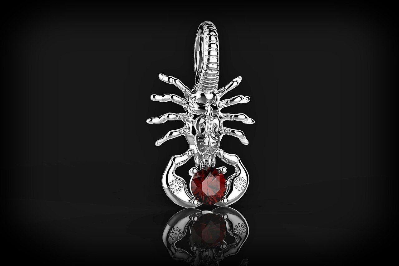 Tityus Scorpion Pendant *Synthetic Ruby With 10k/14k/18k White, Yellow Rose Green Gold, Gold Plated & Silver* Scorpio Zodiac Charm Necklace