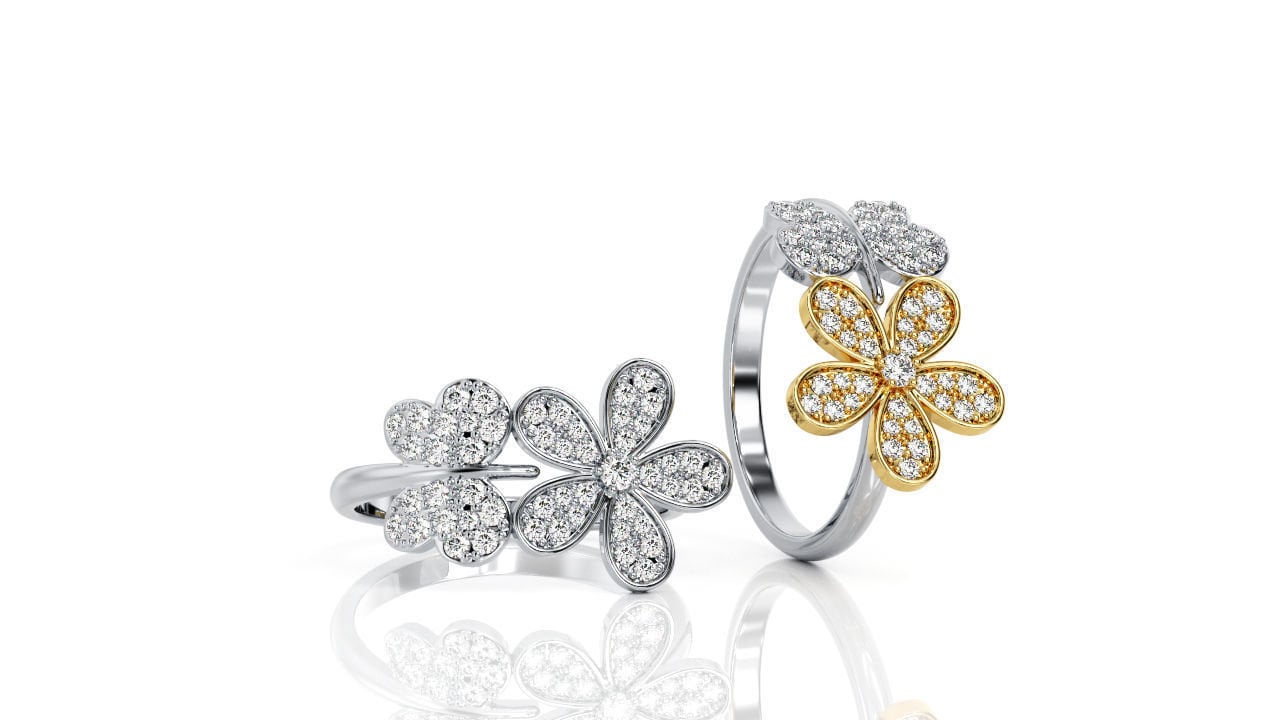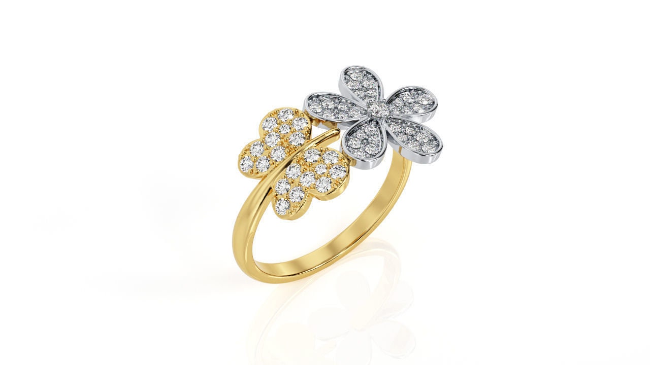 Sold OutAs this is a 2 tone ring, please let us know the color breakdown you prefer. Let us know what color gold (yellow, white, rose, green or plating combination) you would like for the butterfly and the flower.