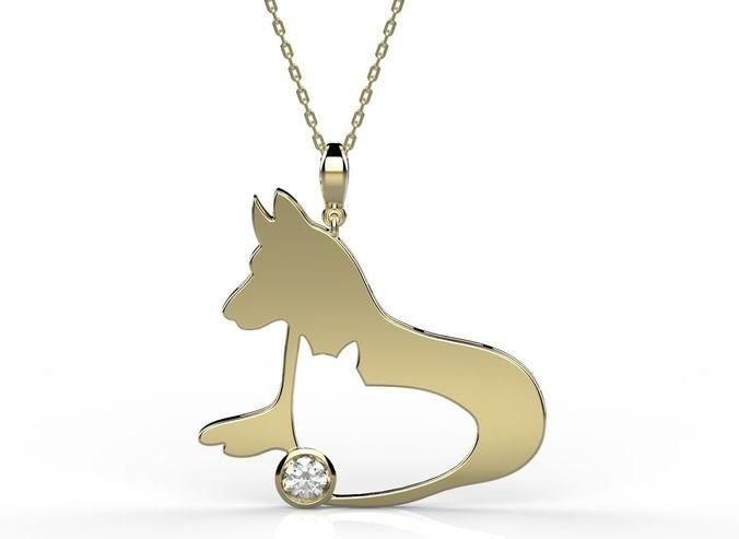 Cat-Dog Pet Pendant *Moissanite With 10k/14k/18k White, Yellow, Rose, Green Gold, Gold Plated & Silver* Animal Kitten Puppy Charm Necklace