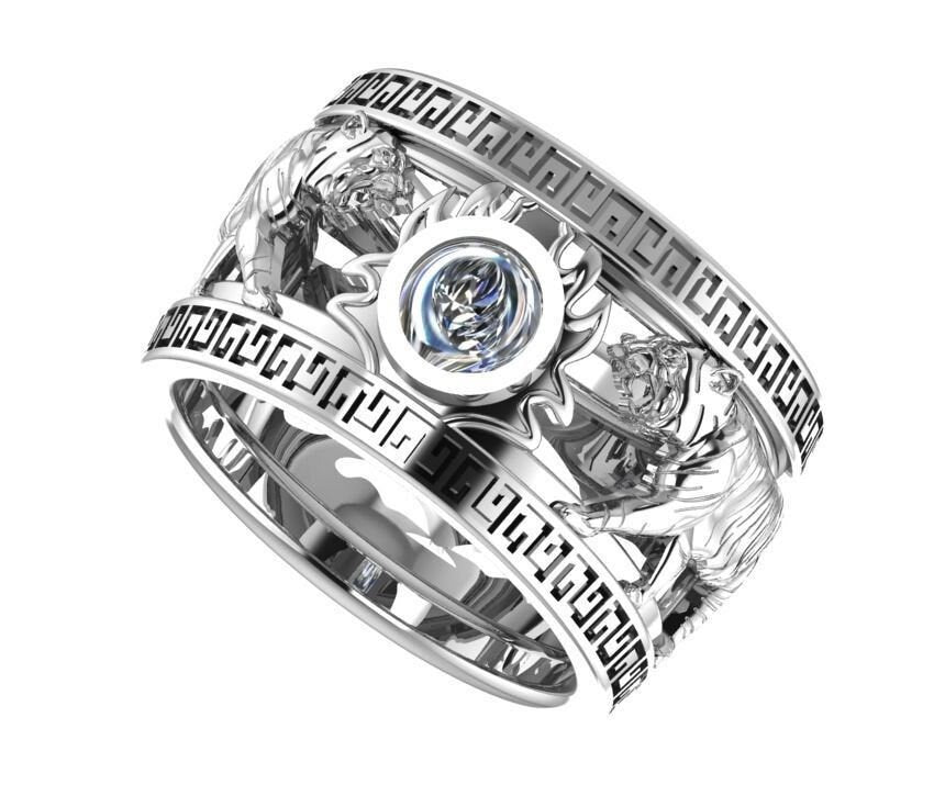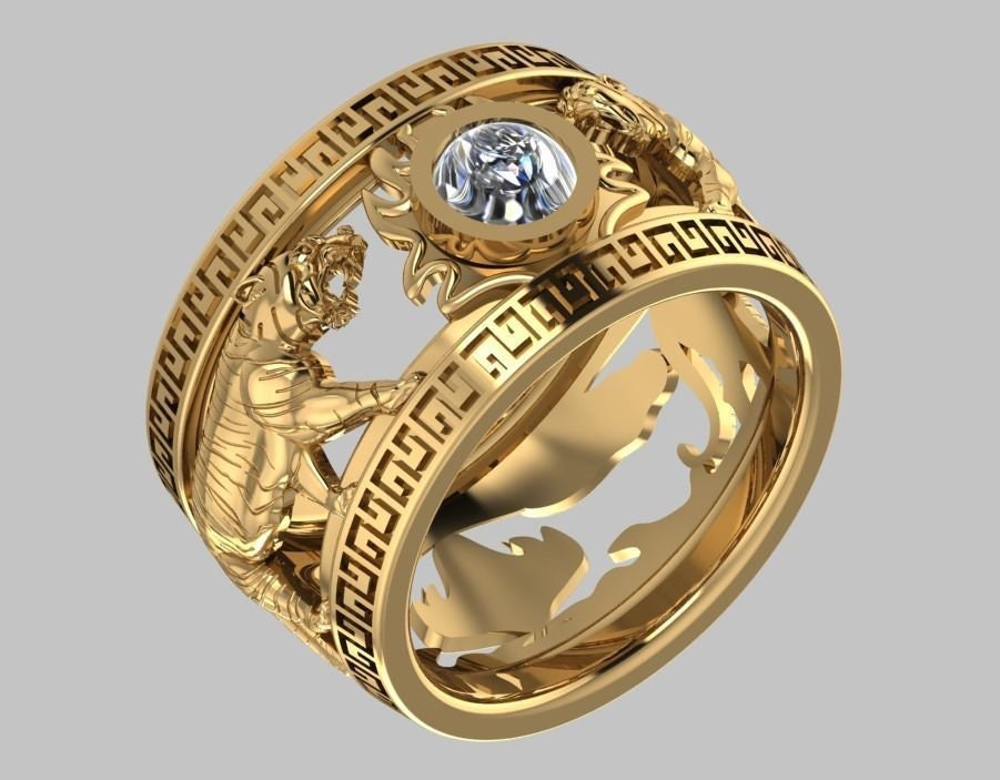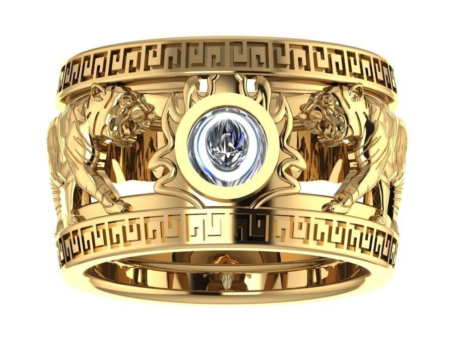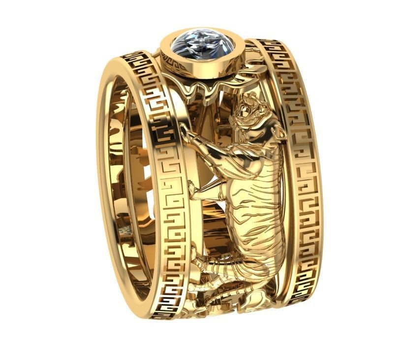 Henith Tiger Ring *Moissanite With 10k/14k/18k White, Yellow Rose, Green Gold, Gold Plated & Silver* Animal Cat Africa Jungle Chinese Thumb