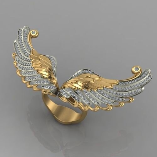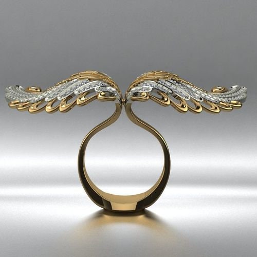 I Believe I Can Fly Wing Ring *0.76 Carat Moissanite With 10k/14k/18k White, Yellow, Rose, Green Gold 22k Gold Plated & Silver* Bird Animal