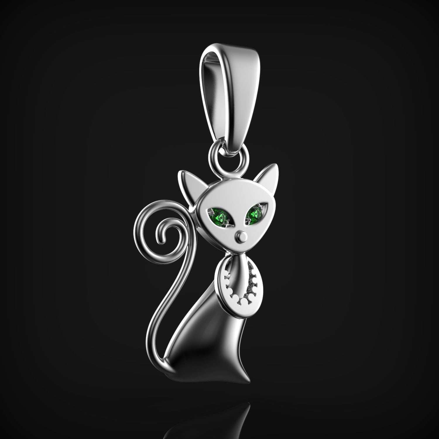 Katy Purry Cat Pendant *Synthetic Emerald with 10k/14k/18k White, Yellow, Rose, Green Gold, Gold Plated & Silver* Animal Kitten Pet Charm