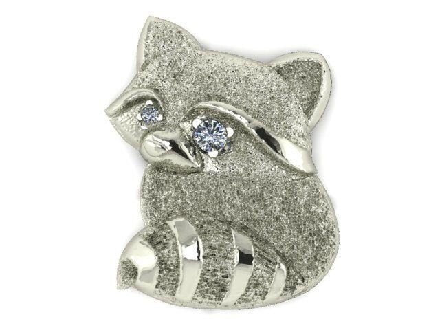 Ralph The Raccoon Pendant *Moissanite With 10k/14k/18k White, Yellow, Rose, Green Gold, Gold Plated & Silver* Animal Pet Vet Charm Necklace