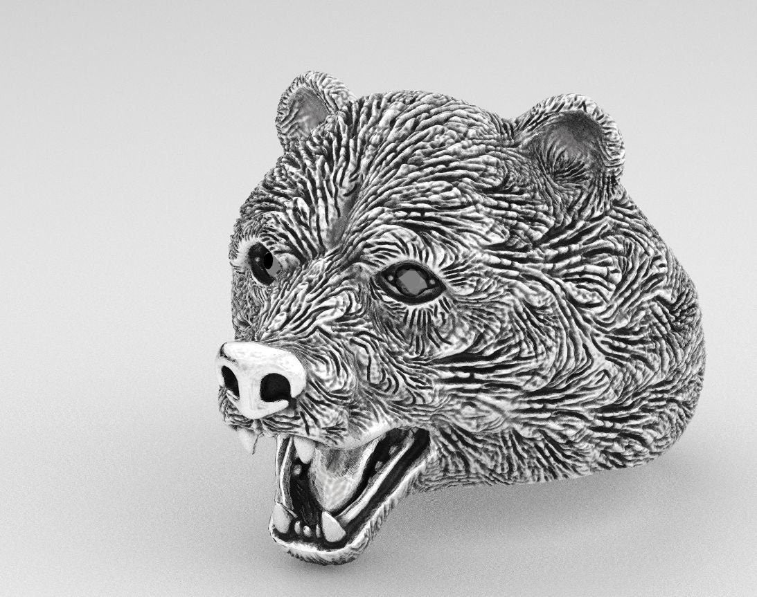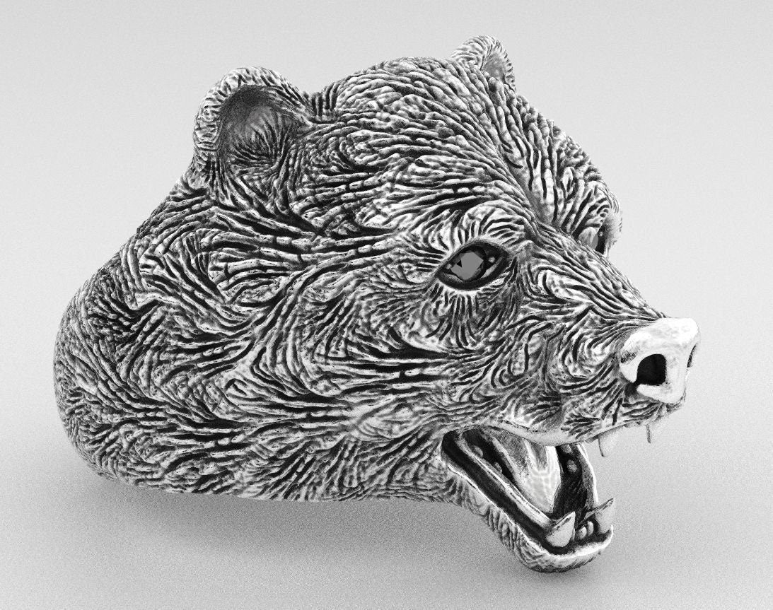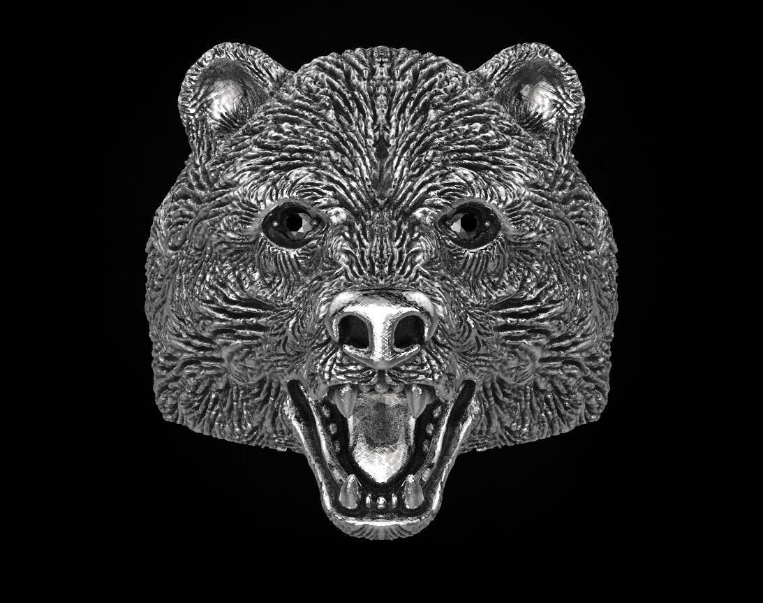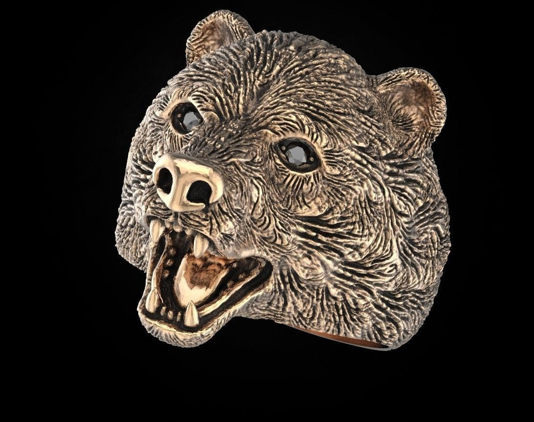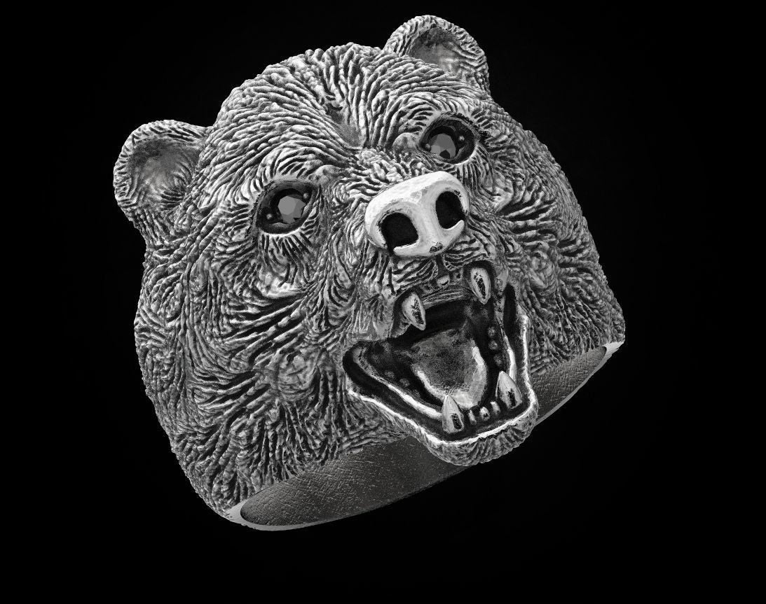 Revenant Bear Ring *Onyx With 10k/14k/18k White, Yellow, Rose, Green Gold, Gold Plated & Silver* Animal Hunter Biker Gothic Punk Thumb Gift