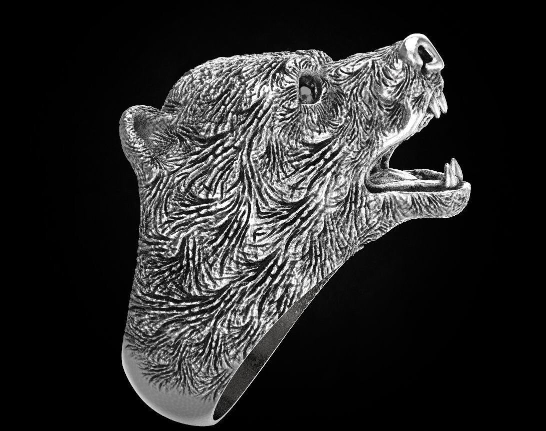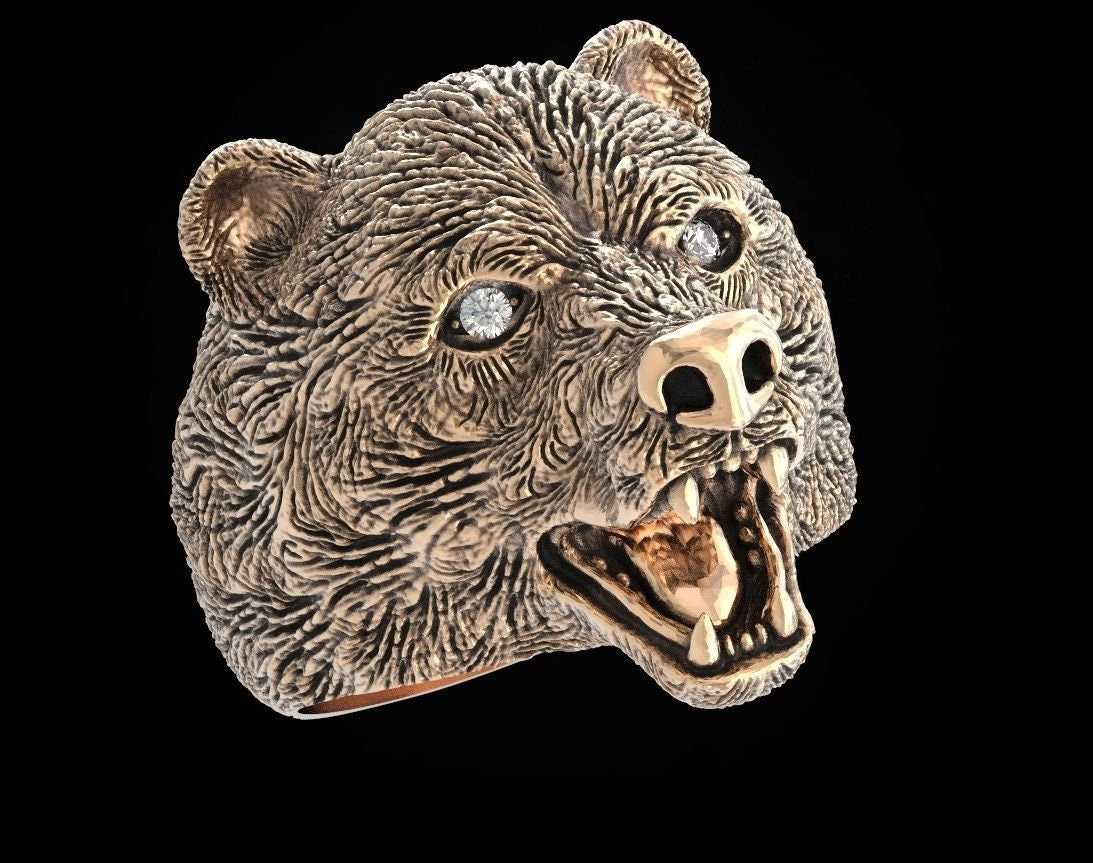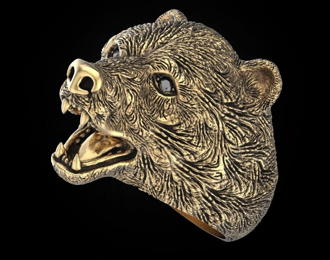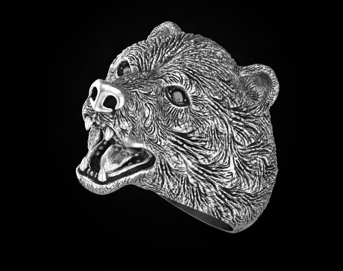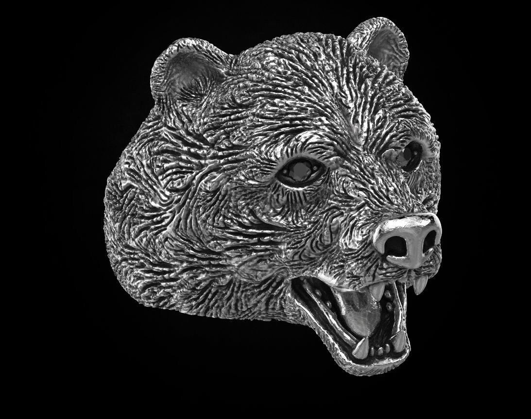 Revenant Bear Ring *Onyx With 10k/14k/18k White, Yellow, Rose, Green Gold, Gold Plated & Silver* Animal Hunter Biker Gothic Punk Thumb Gift