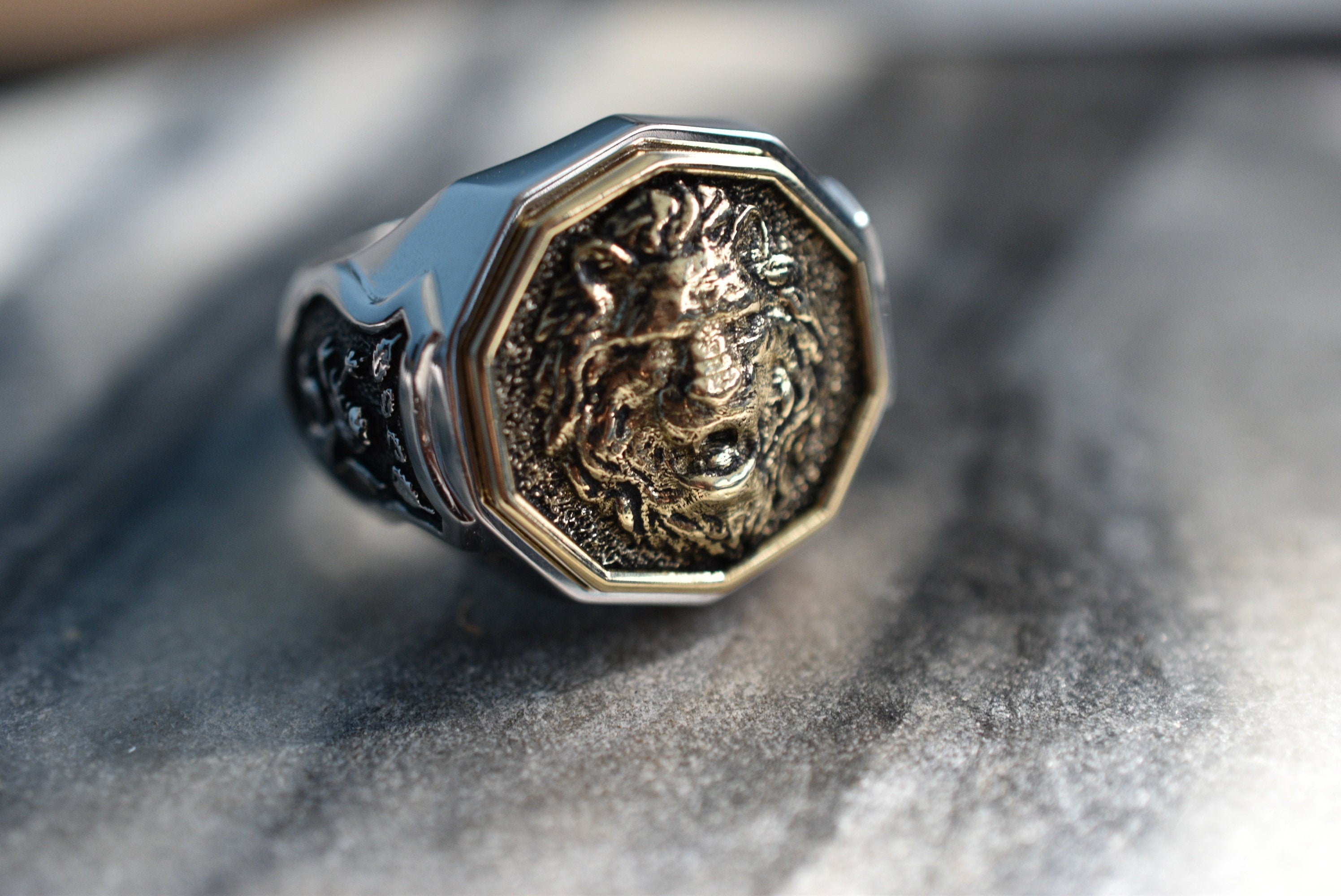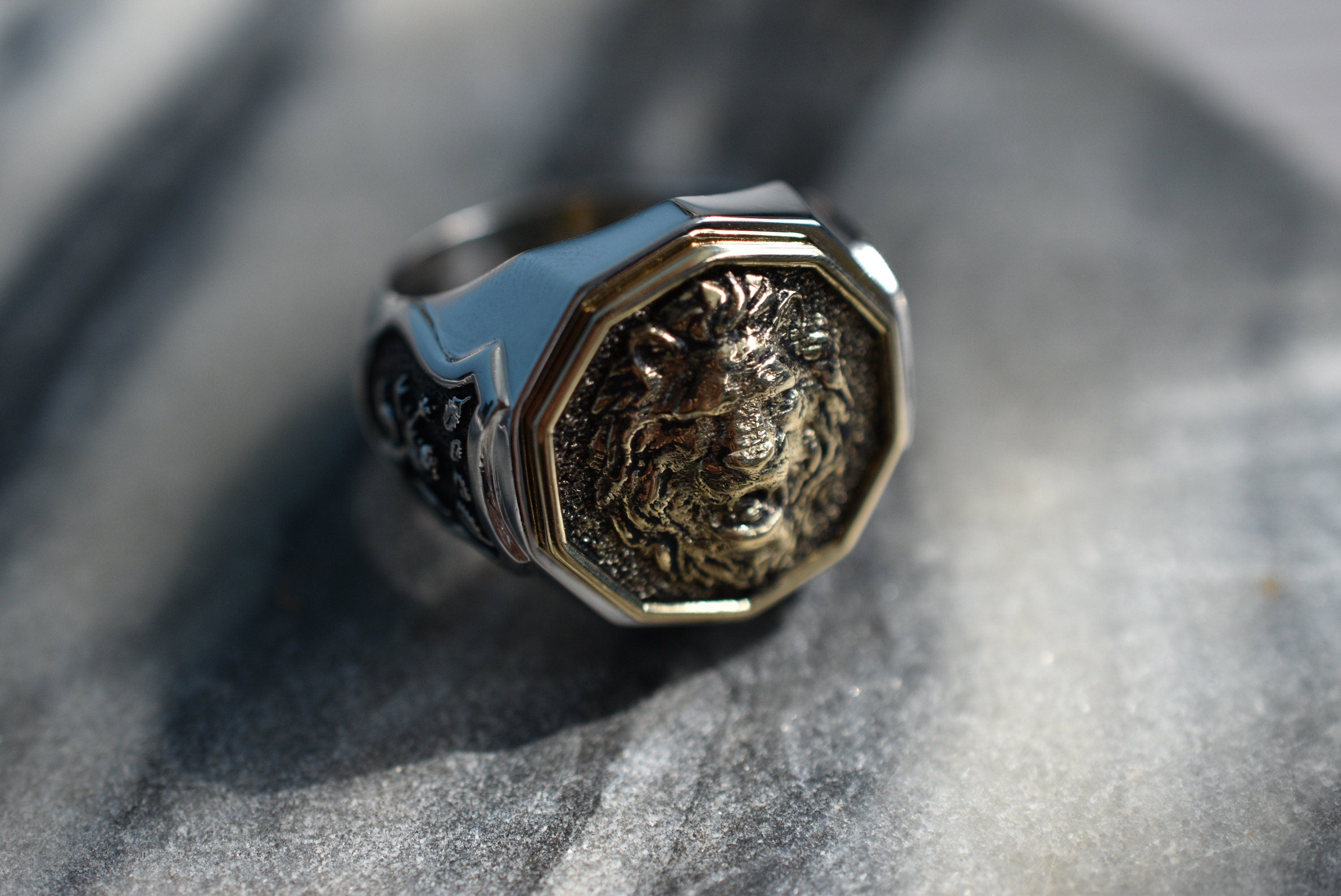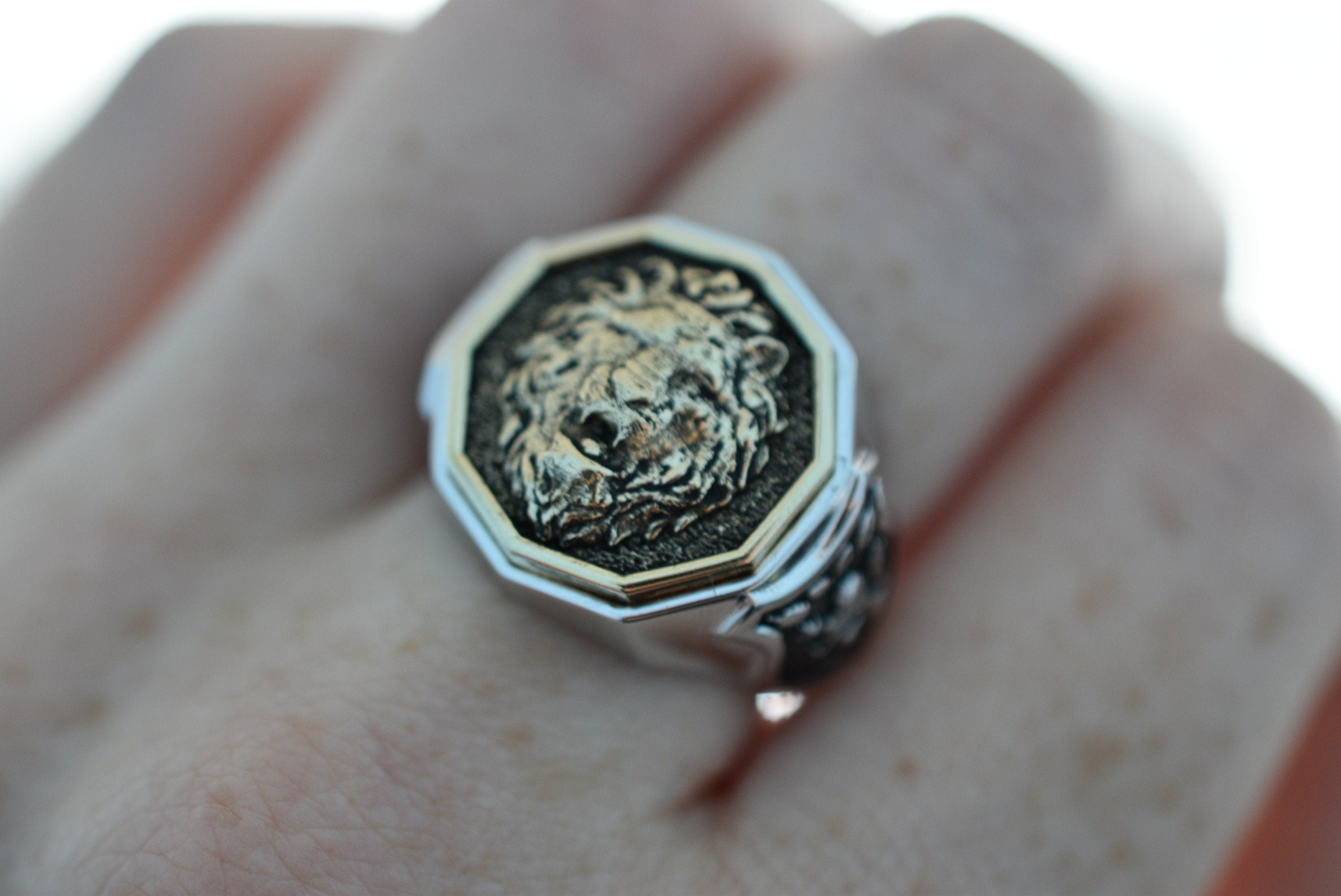 As this is a 2 tone ring, please let us know the color breakdown you prefer. Let us know what color gold (yellow, white, rose, green or plating combination) you would like for the ring and lion.