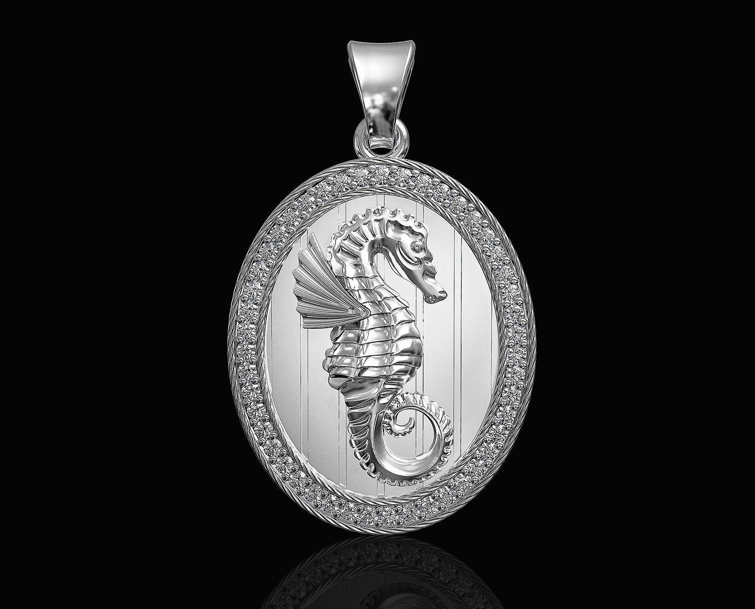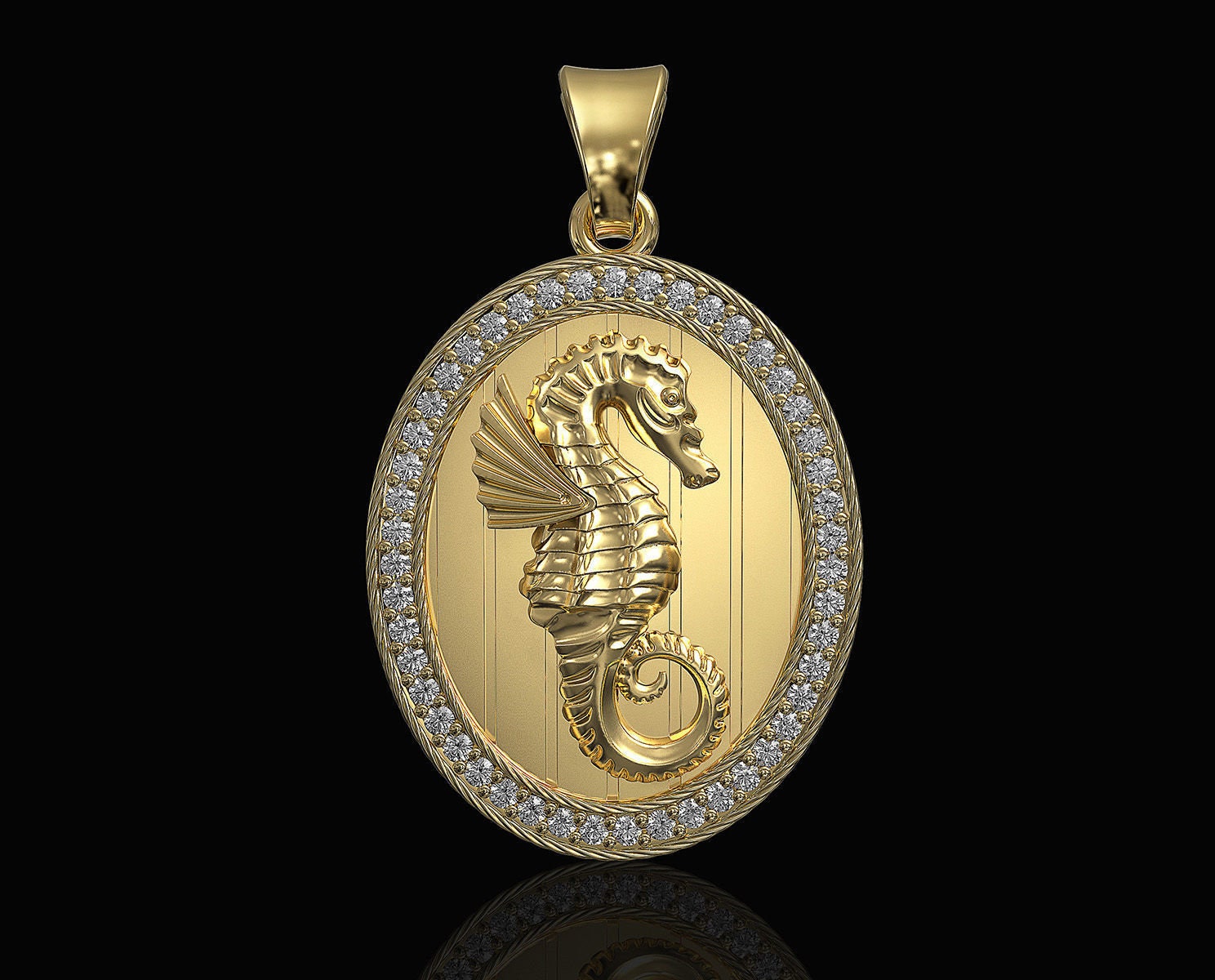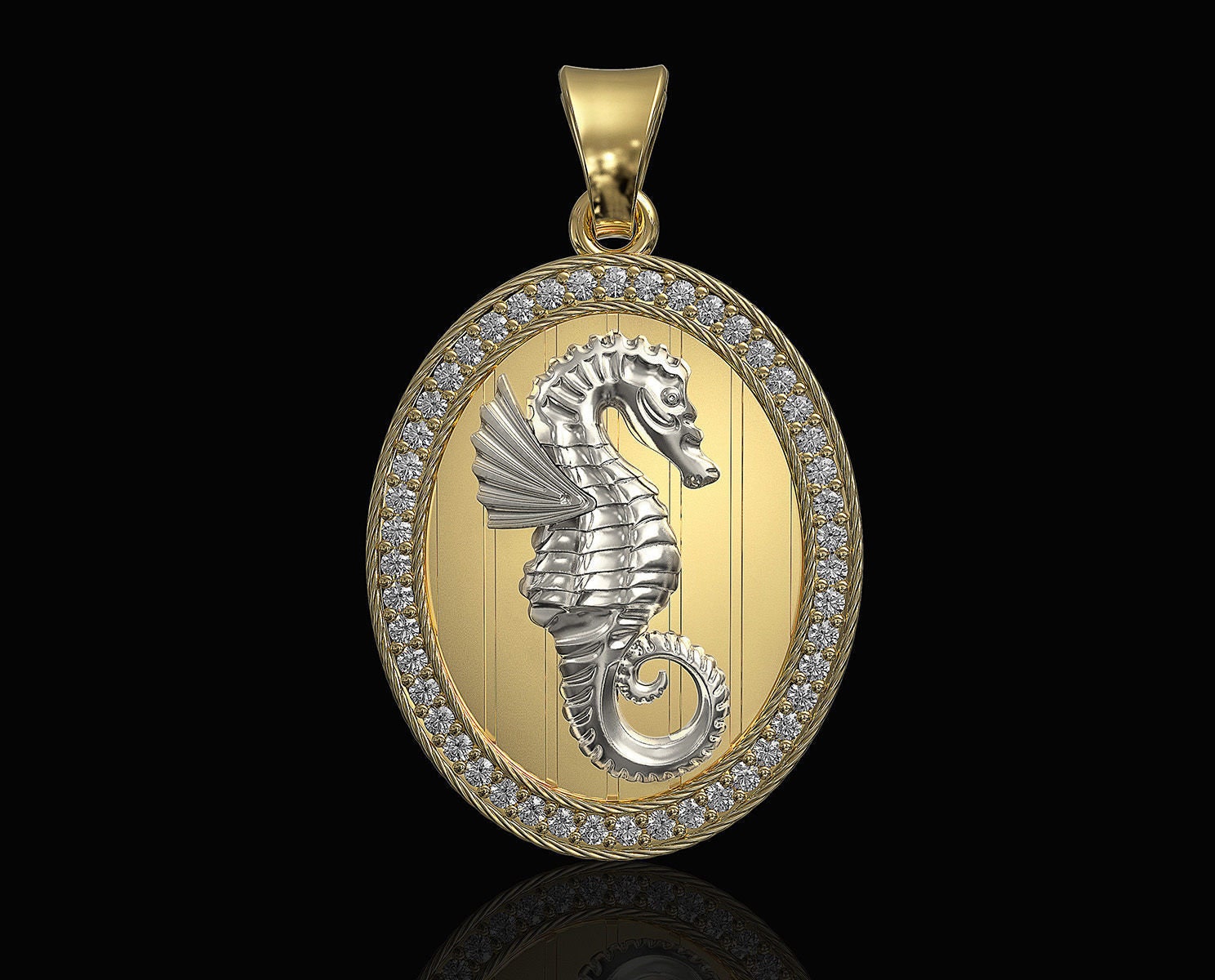 Seahorse Pendant *Moissanite With 10k/14k/18k White, Yellow, Rose, Green Gold, Gold Plated & Silver* Animal Fish Water Boat Charm Necklace