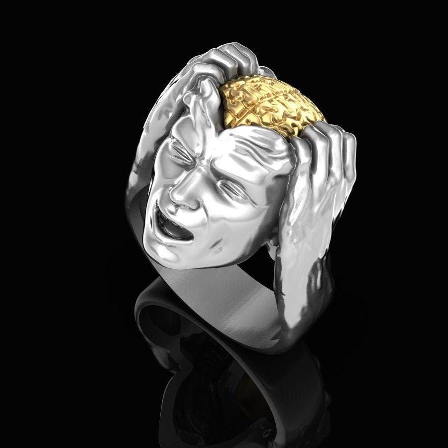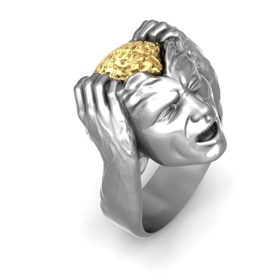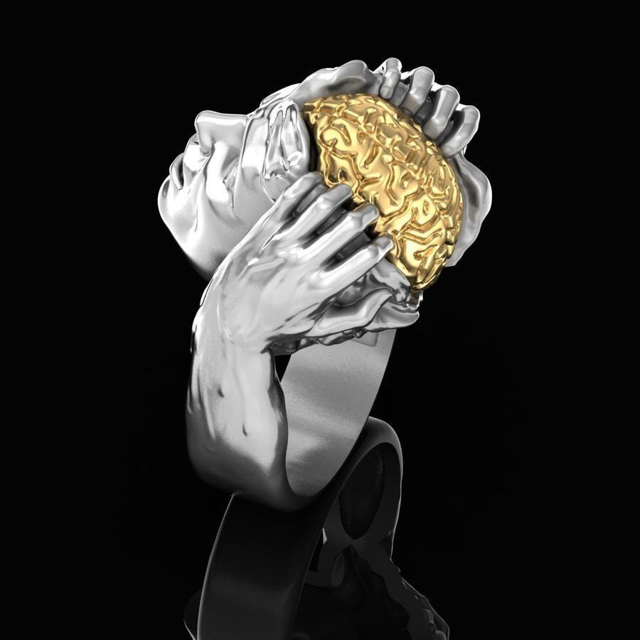 As this is a 2 tone ring, please let us know the color breakdown you prefer. Let us know what color gold (yellow, white, rose, green or plating combination) you would like for the face and the brain