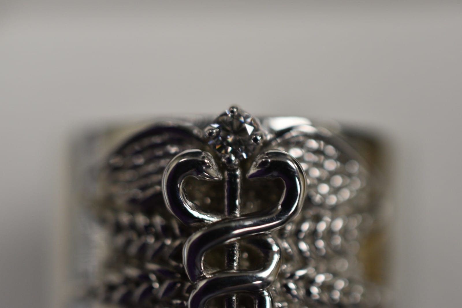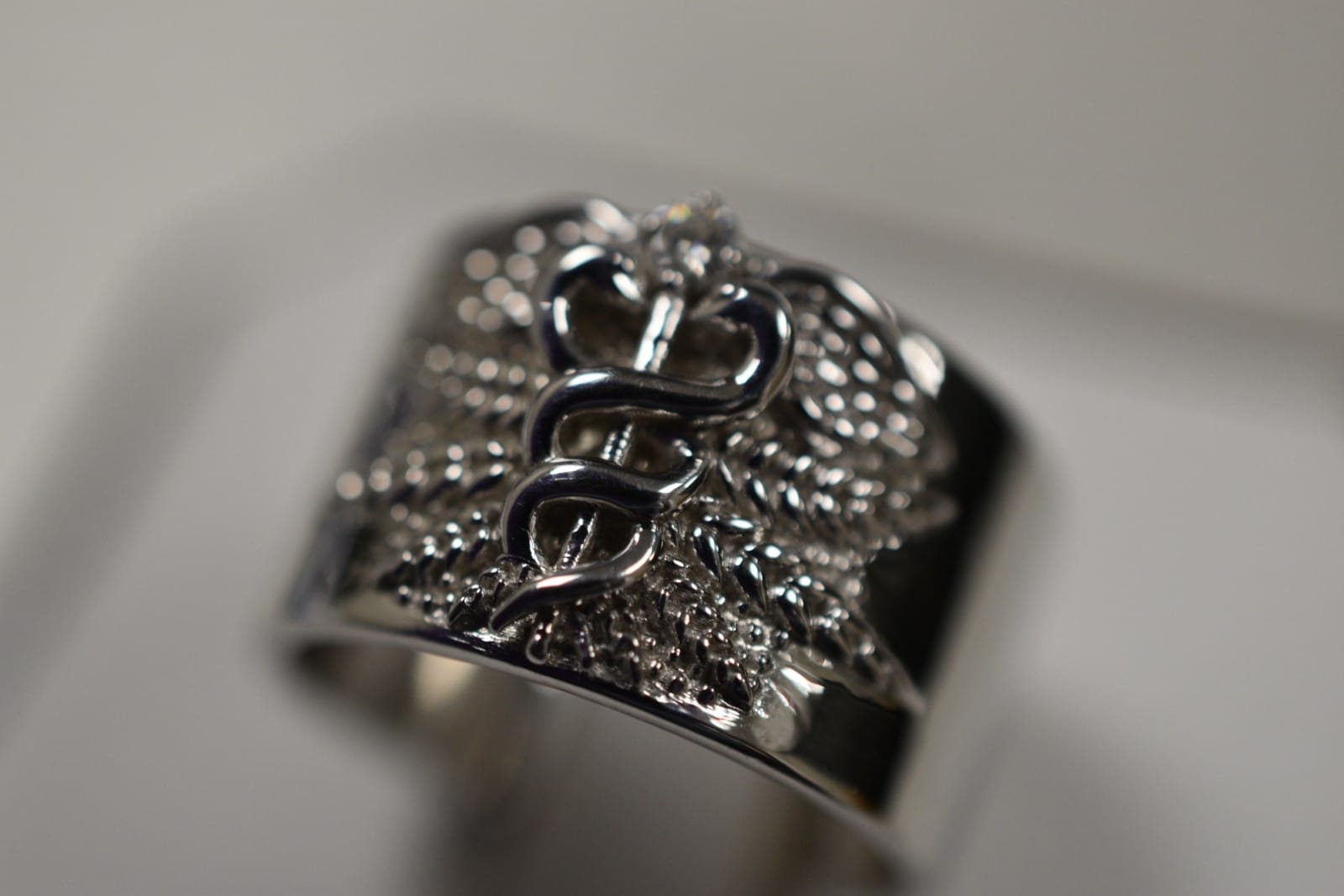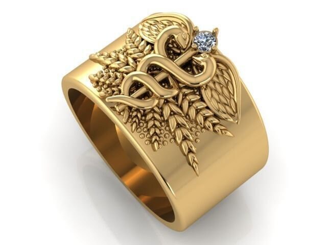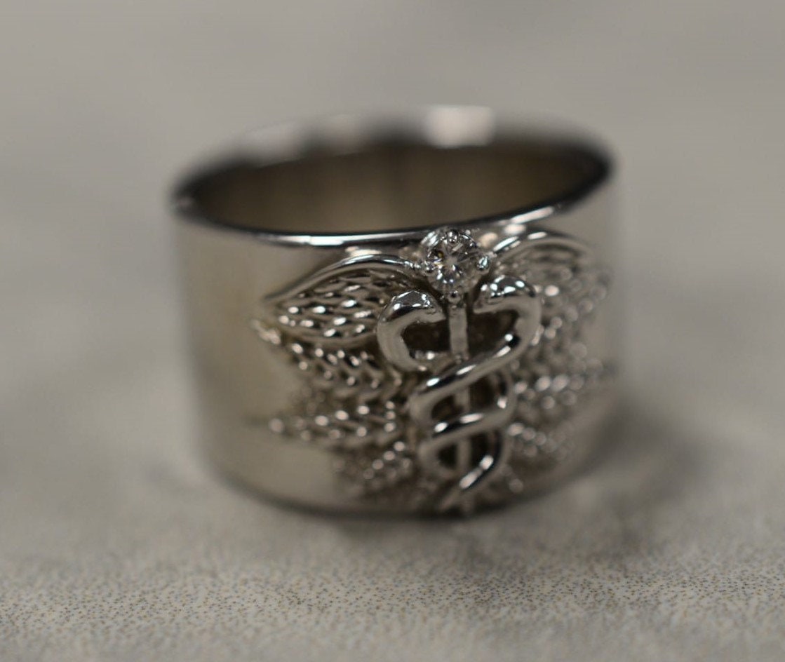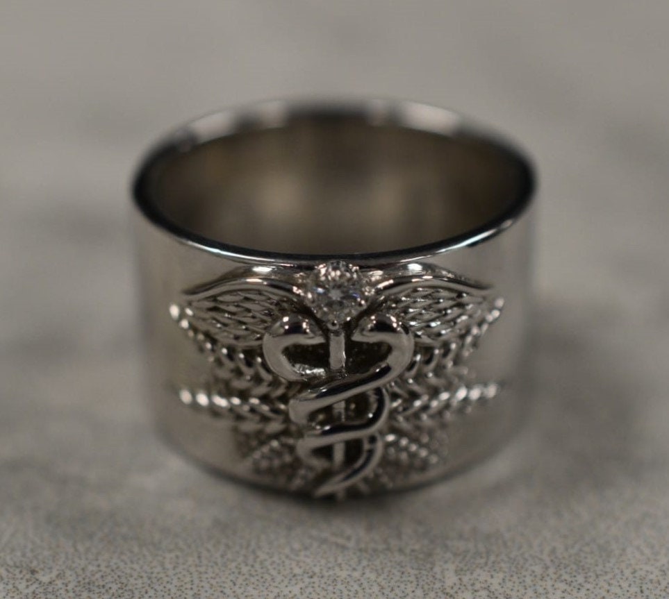 Caduceus Medical Ring *Moissanite with 10k/14k/18k White, Yellow, Rose, Green Gold, Gold Plated & Silver* Doctor Nurse Paramedic First Aid