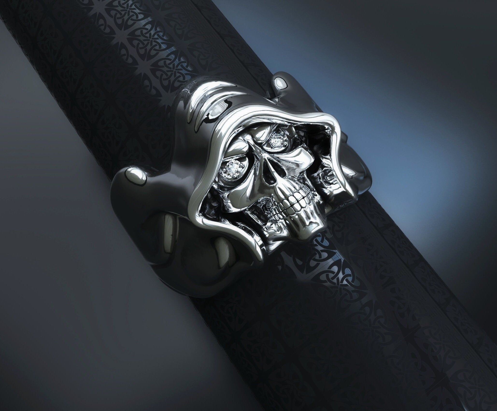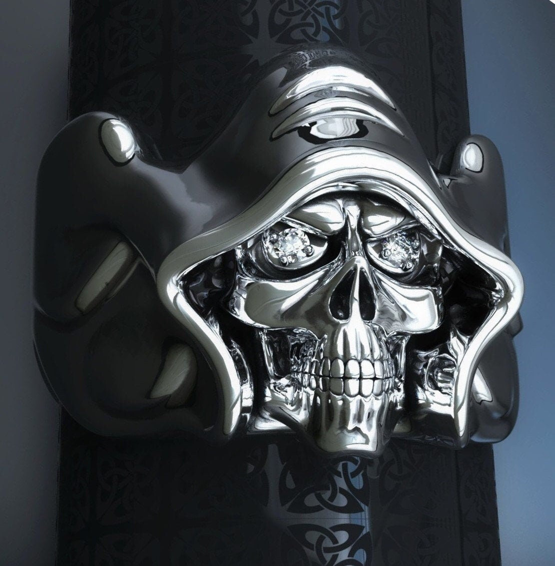 Phantom Skull Ring *Moissanite With 10k/14k/18k White, Yellow, Rose, Green Gold, Gold Plated & Silver* Skeleton Biker Punk Gothic Demonic