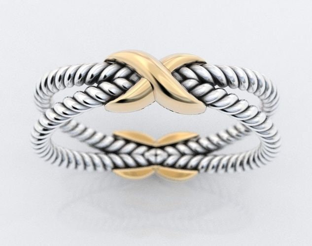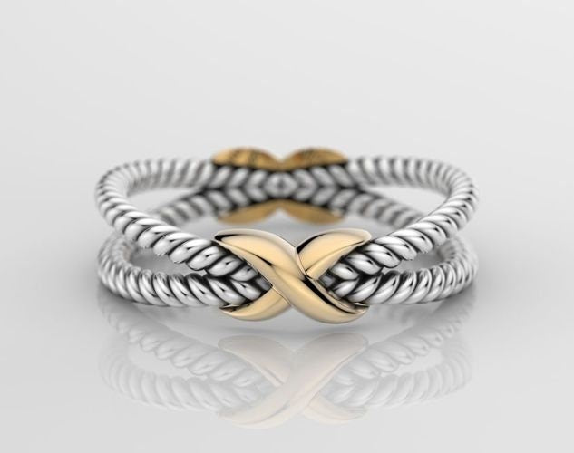 As this is a 2 tone ring, please let us know the color breakdown you prefer. Let us know what color gold (yellow, white, rose, green or plating combination) you would like for X and the rope ring.