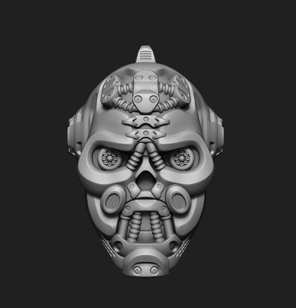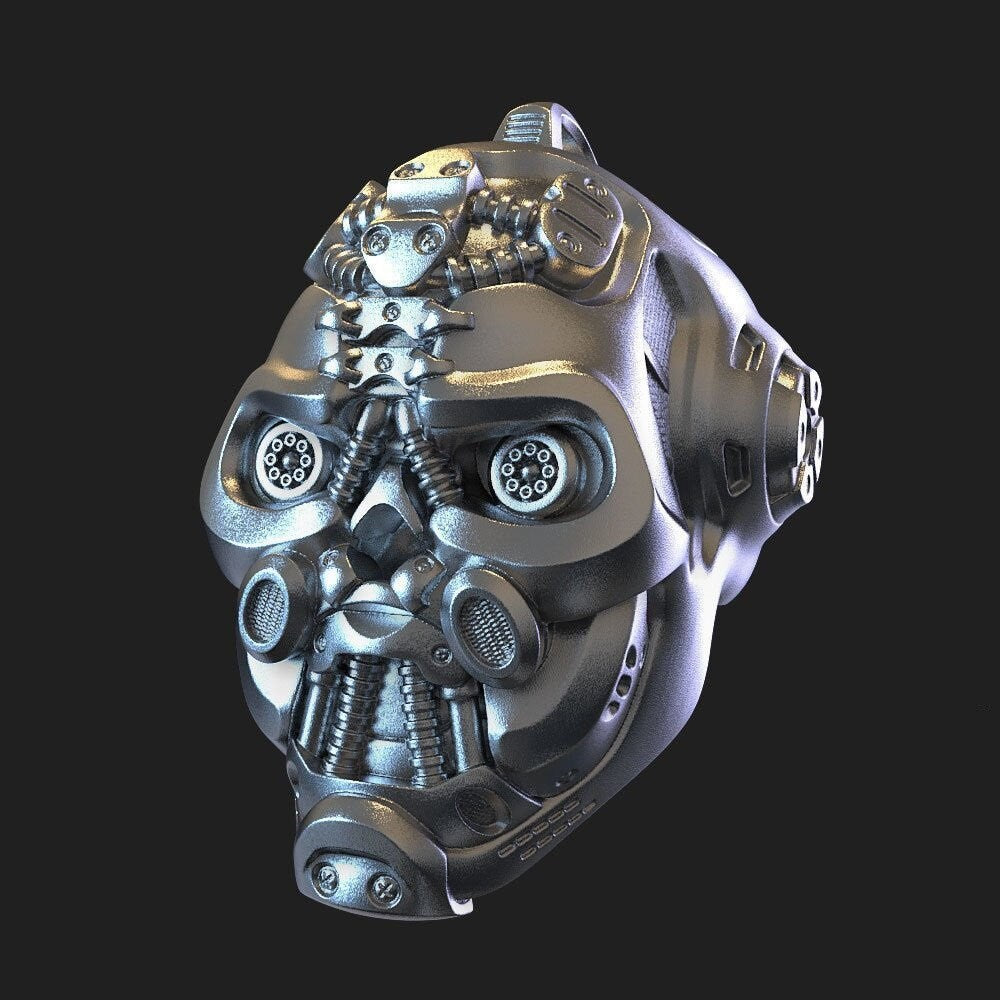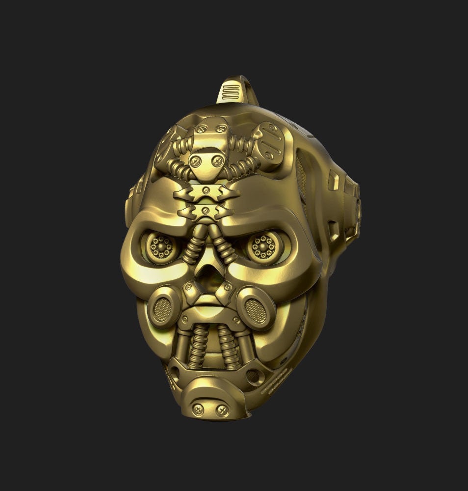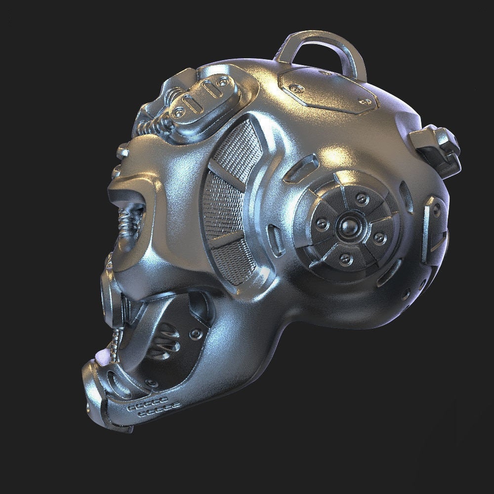 Alpha Robotic Skull Pendant *10k/14k/18k White, Yellow, Rose, Green Gold, Gold Plated & Silver* Fantasy Biker Punk Gothic Charm Necklace