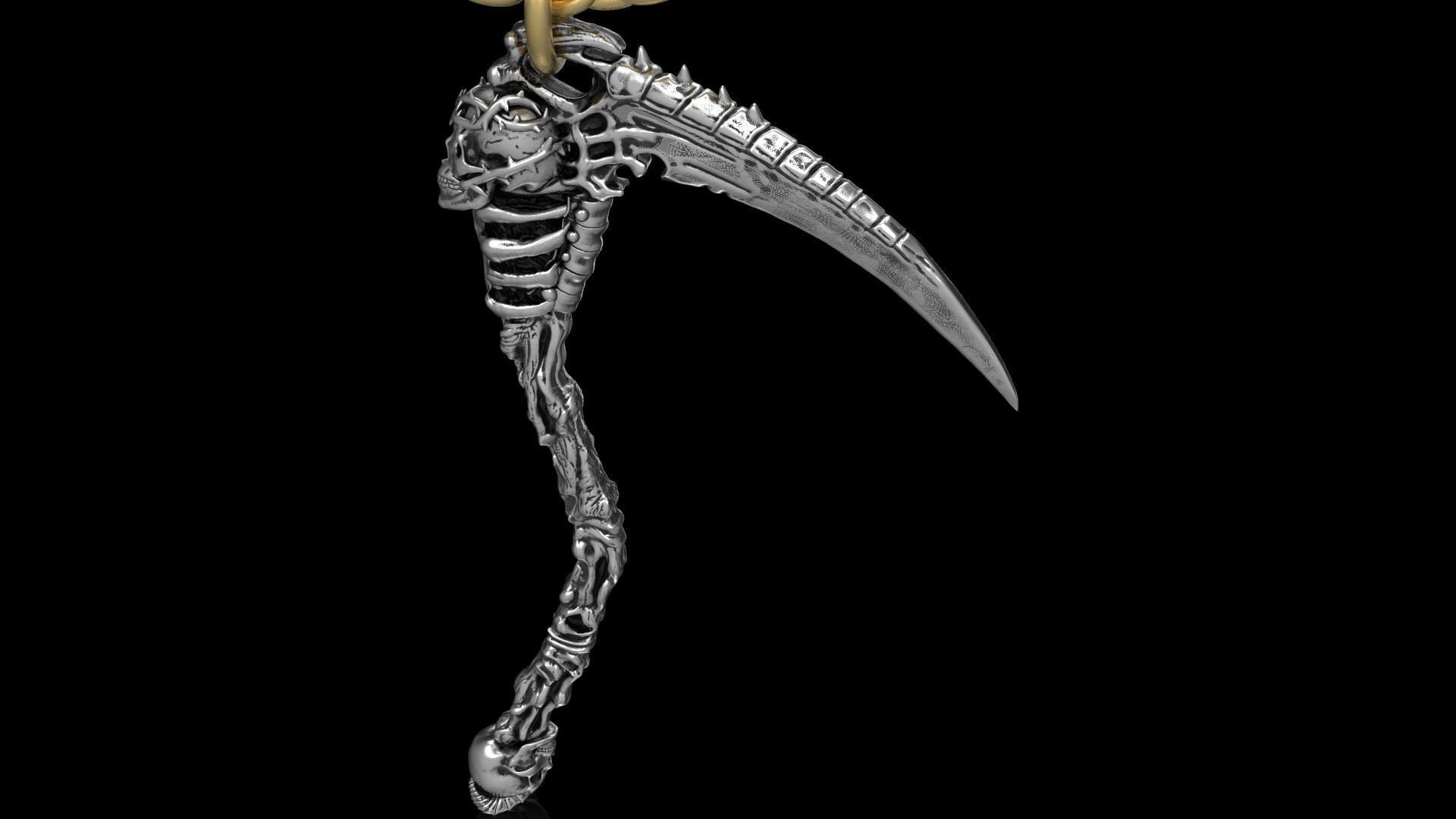 Grim Reaper Scythe Pendant *10k/14k/18k White, Yellow, Rose, Green Gold, Gold Plated & Silver* Blade Biker Punk Gothic Demon Charm Necklace