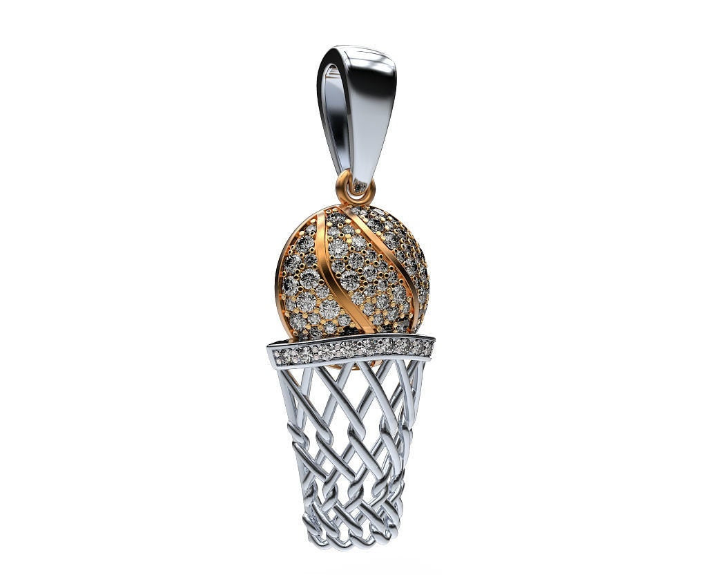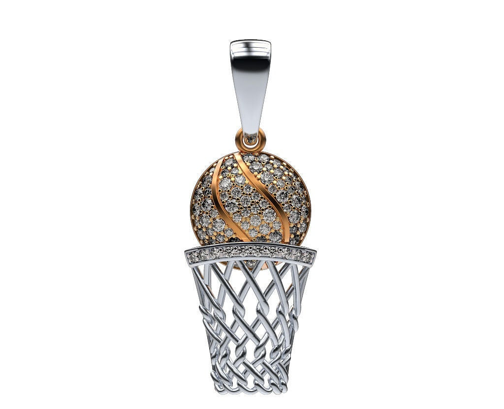 All Net Basketball Pendant *0.62 Moissanite With 10k/14k/18k White, Yellow, Rose Green Gold, Gold Plated & Silver* NBA Sport Charm Necklace