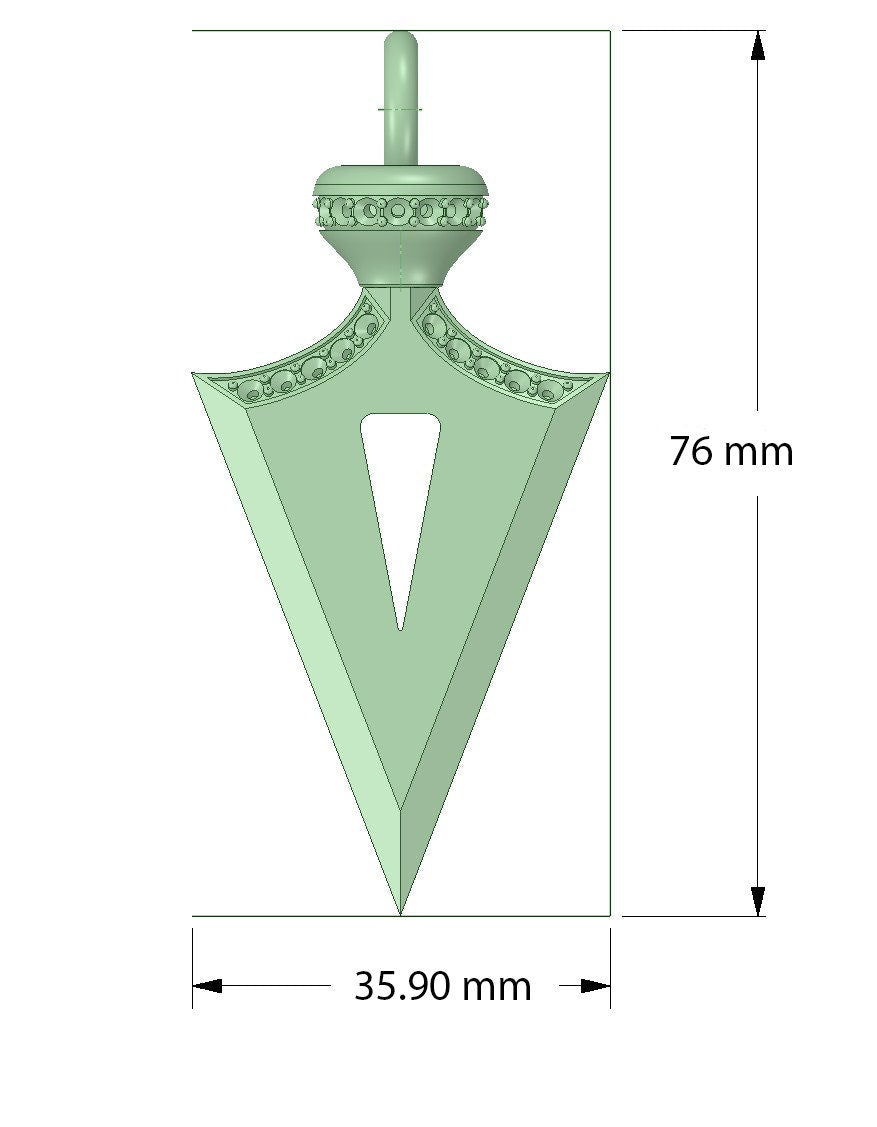 Dimensions: 76.0 mm in height, 35.9 mm in width, and 15.1 mm thick and weighs 79 grams in 14k gold (pre-cast weight and dimensions shown)