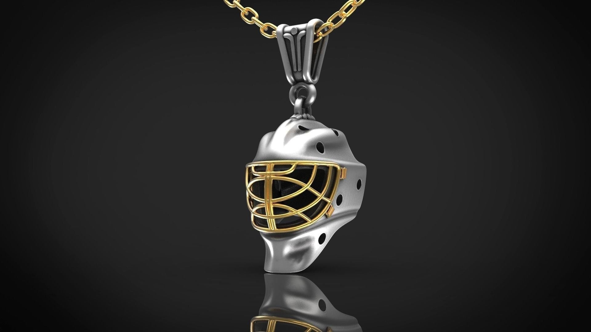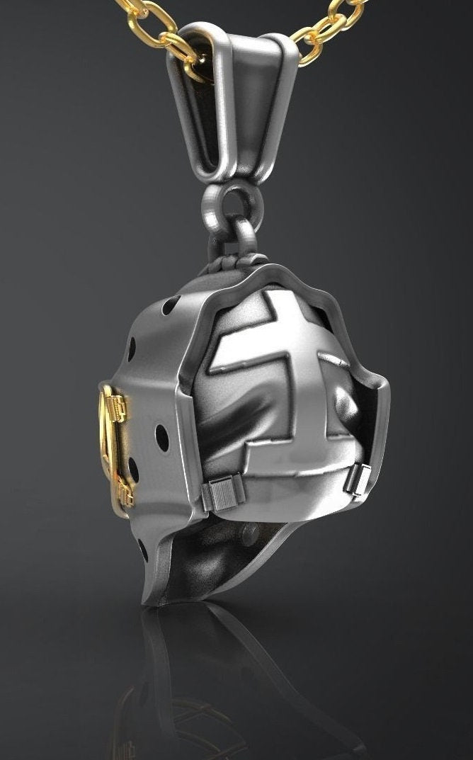 As this is a 2 tone pendant, please let us know the color breakdown you prefer. Let us know what color gold (yellow, white, rose, green or plating combination) you would like for the helmet and the cage.