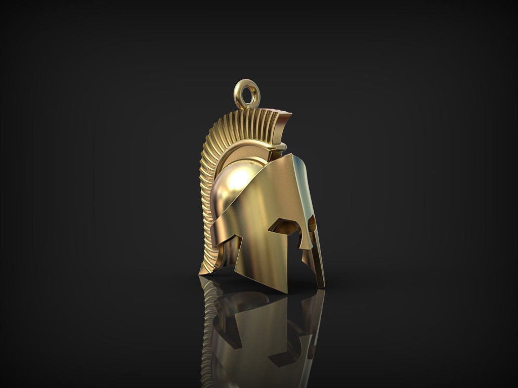 Trojan Helmet Pendant *10k/14k/18k White, Yellow, Rose, Green Gold, Gold Plated & Silver* Spartan Warrior Fighter Men Man Charm Necklace