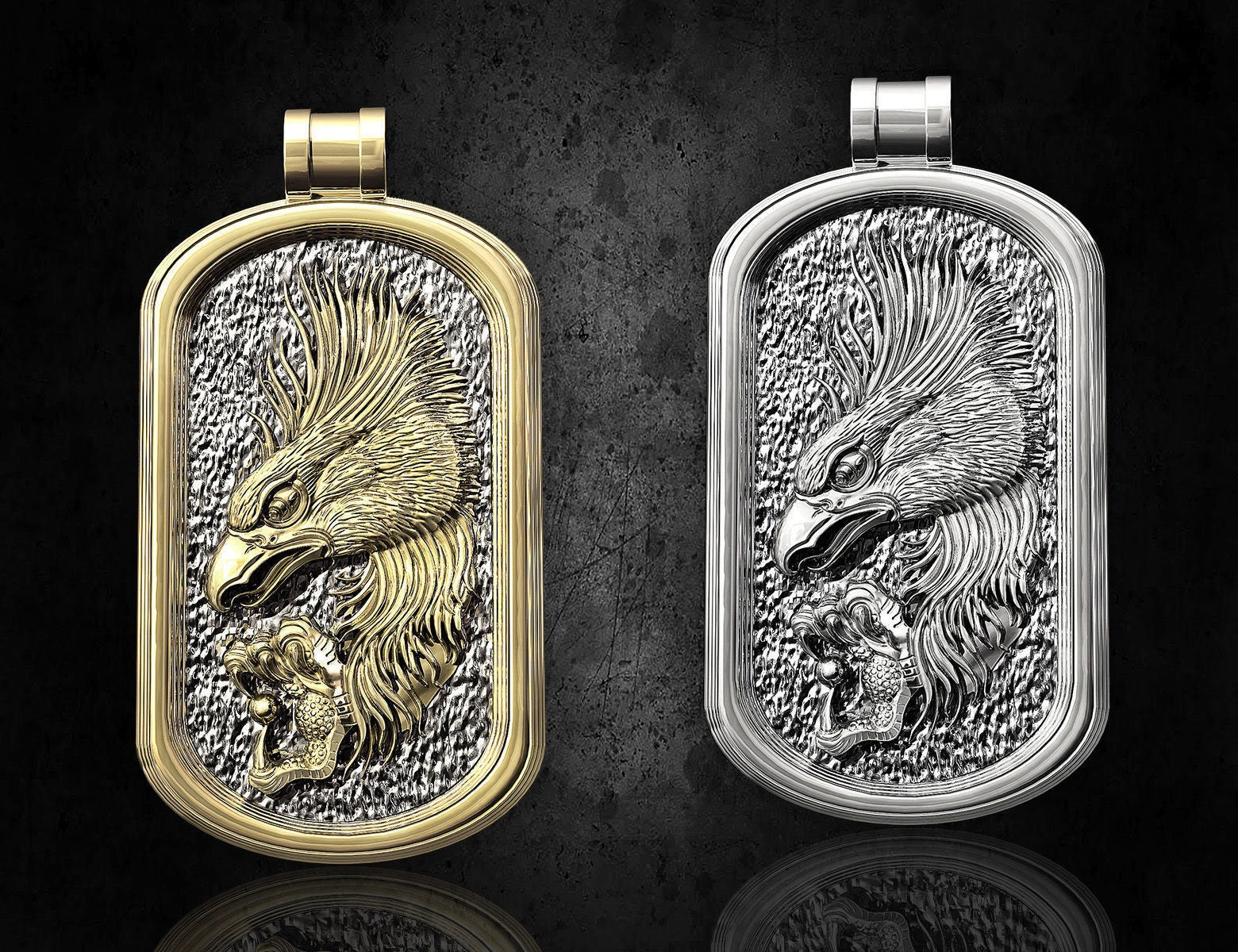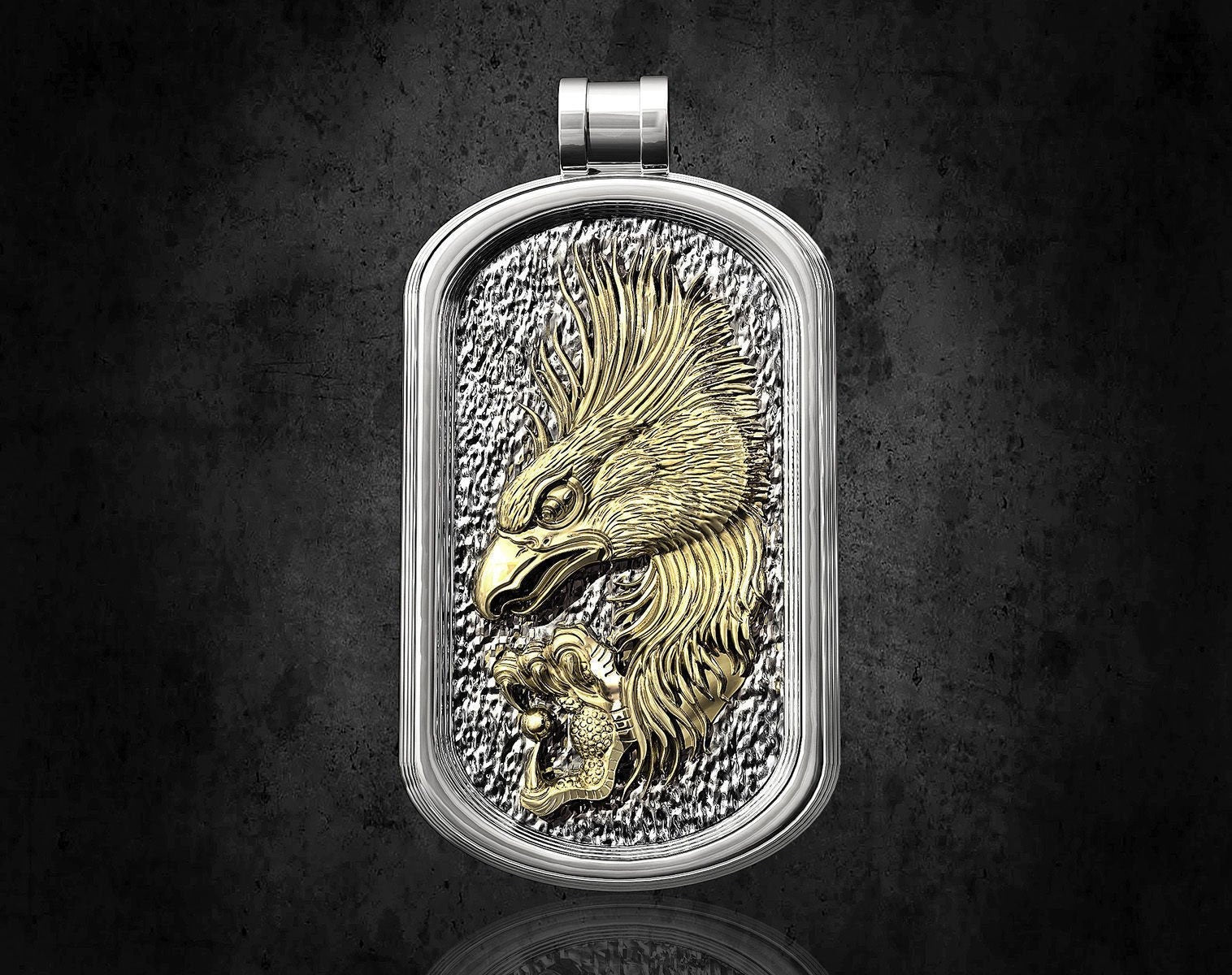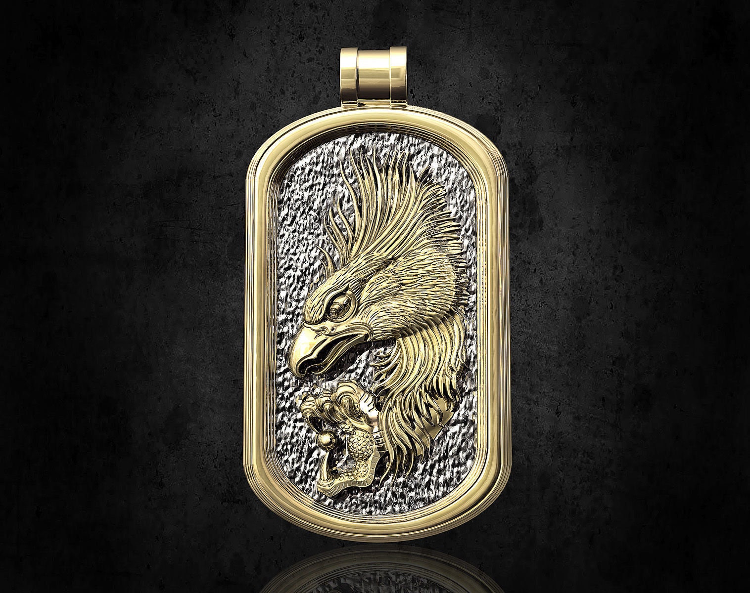 As this is a 2 tone pendant, please let us know the color breakdown you prefer. Let us know what color gold (yellow, white, rose, green or plating combination) you would like for the outer portion and the bird portion