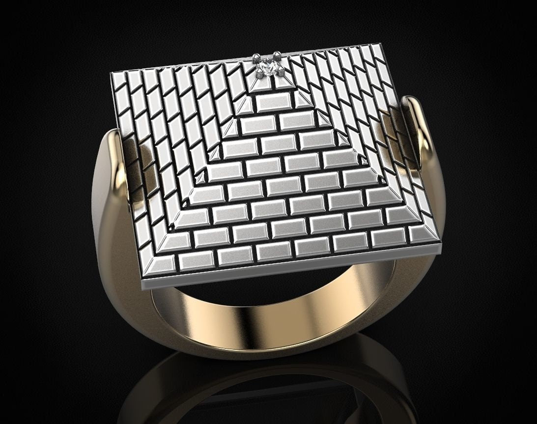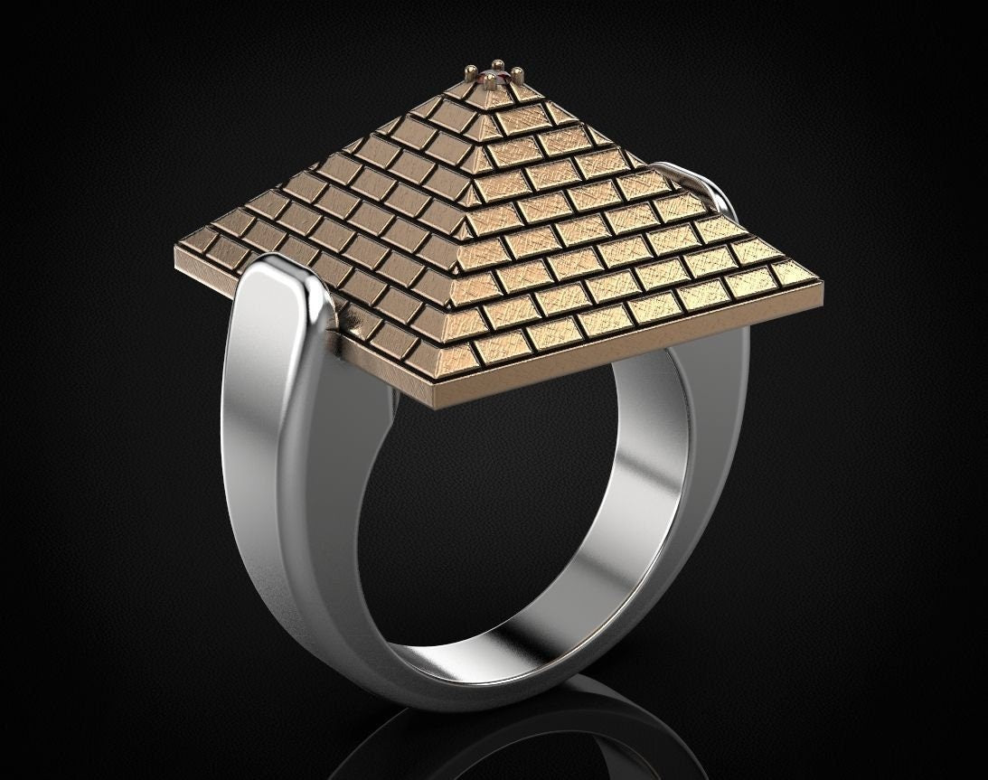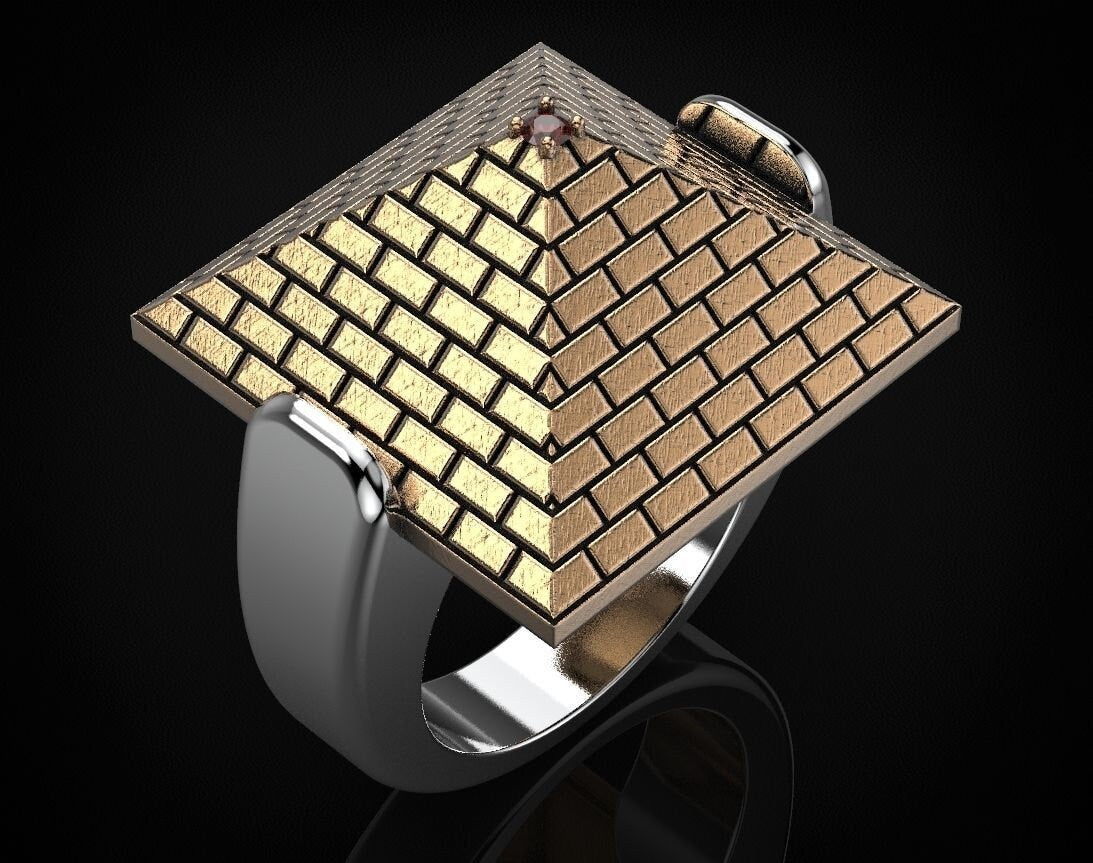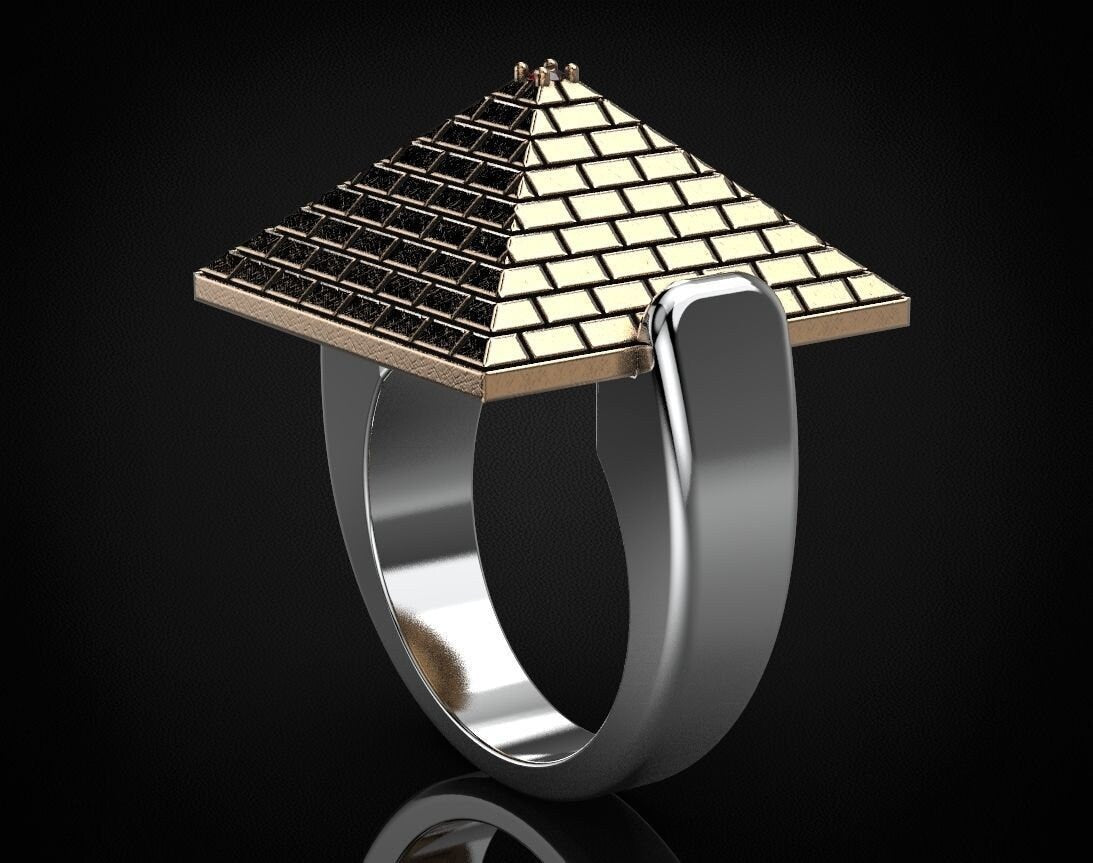 Sold OutAs this is a 2 tone ring, please let us know the color breakdown you prefer. Let us know what color gold (yellow, white, rose, green or plating combination) you would like for the pyramid and the ring