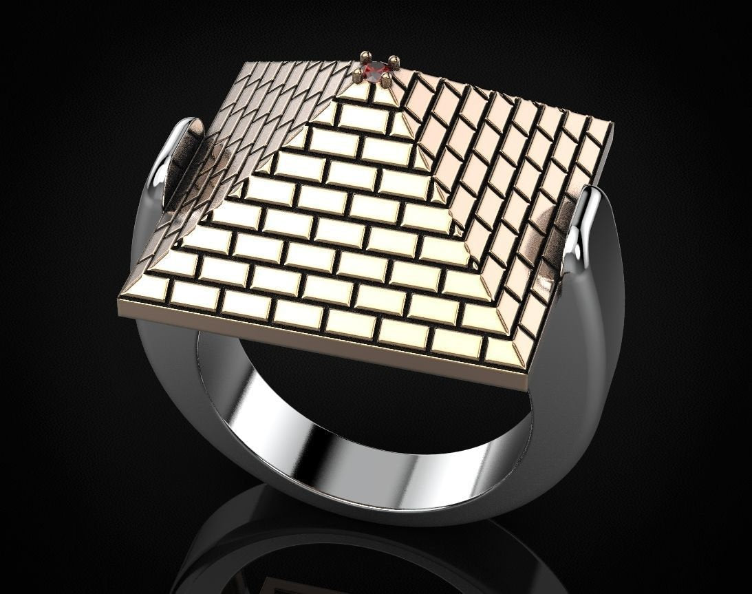 Great Pyramid Ring *Ruby With 10k/14k/18k White, Yellow, Rose, Green Gold, Gold Plated & Silver* Egypt Giza Mummy Pharaoh Thumb Men Women