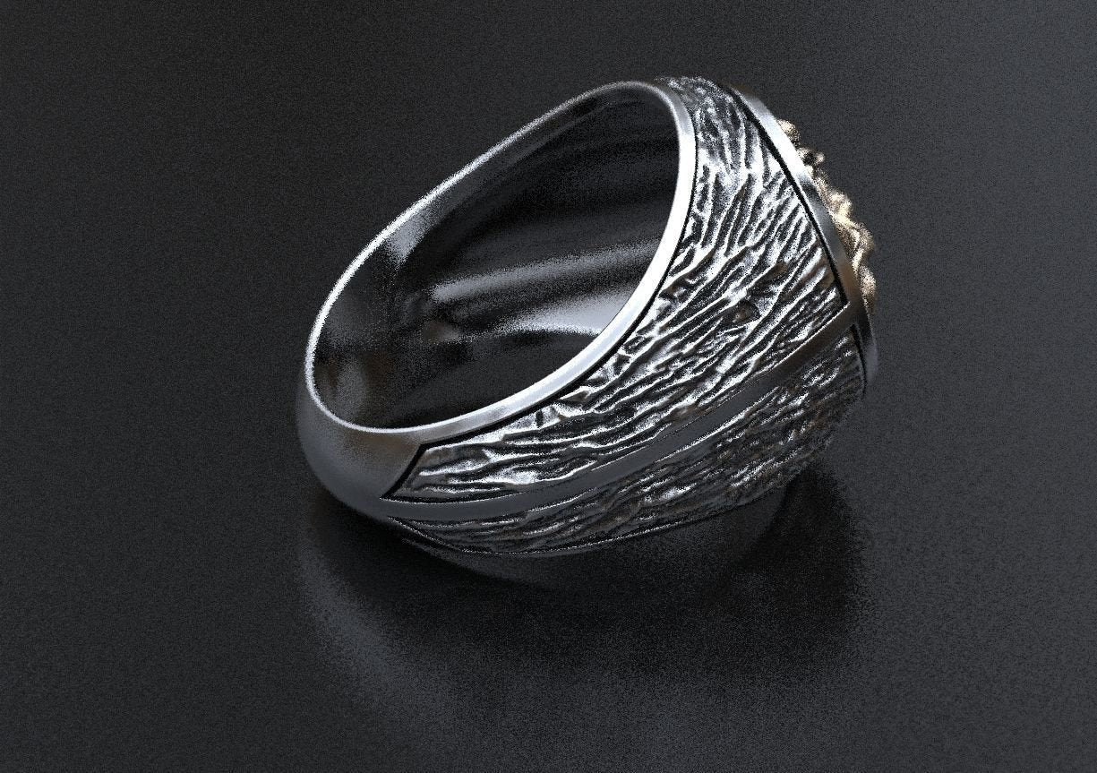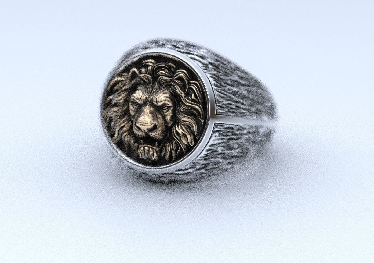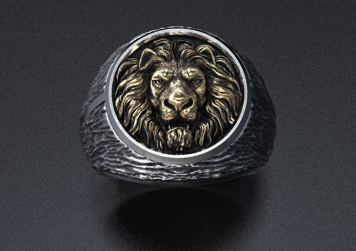 As this is a 2 tone ring, please let us know the color breakdown you prefer. Let us know what color gold (yellow, white, rose, green or plating combination) you would like for the lion and the ring portion.